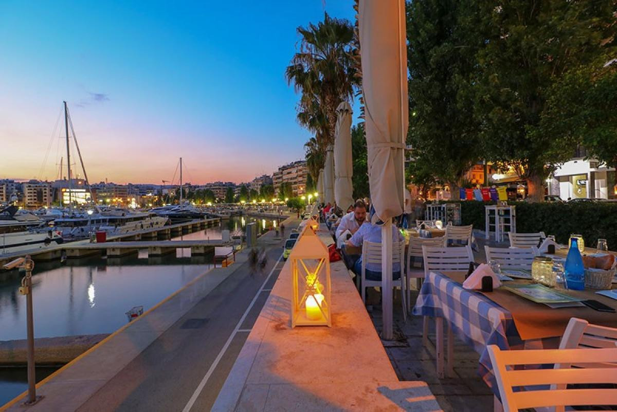 with a glass of wine from the fully updated list of the restaurant Ta Katsarolakia, in Piraeus, Athens.