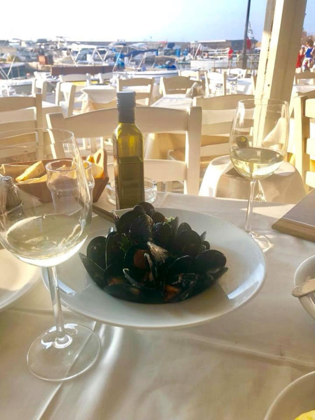 Starting with Cretan dako, socks and dolmadakia, and continuing with delicious shrimp spaghetti, seafood risotto, and steamed mussels, you will not know what to try first. Do not miss the squid and fresh fish that are renewed daily. The fish tavern Neoria in Chania, not only satisfies your appetite, but refreshes you with its wide variety of more than 50 wine labels and entertains you with traditional, cretan music.