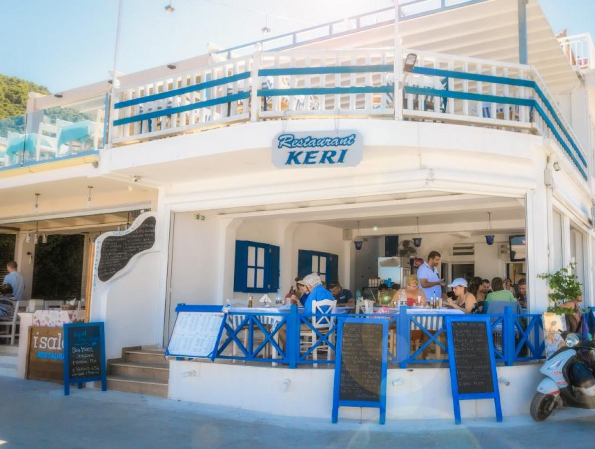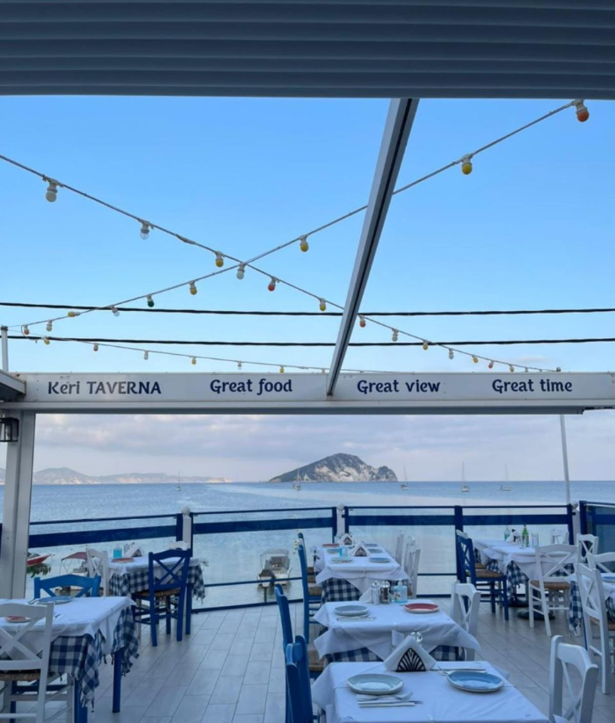 Keri Taverna restaurant is located on the beach of Keri Lake in Zakynthos and offers a wide variety of dishes with emphasis on Greek traditional and Mediterranean cuisine. You must definitely try some of the special dishes of Keri restaurant, such as lobster pasta, rabbit in Zakynthian style and beef stew.Keri Taverna welcomes you from the morning for breakfast, lunch and dinner, serving you from early in the morning until late at night. Enjoy the stunning view from the roof garden and relax in a friendly family atmosphere with excellent service.Keri restaurant is able to host all kinds of events such as birthdays or weddings and provides catering services all over the island of Zakynthos.
