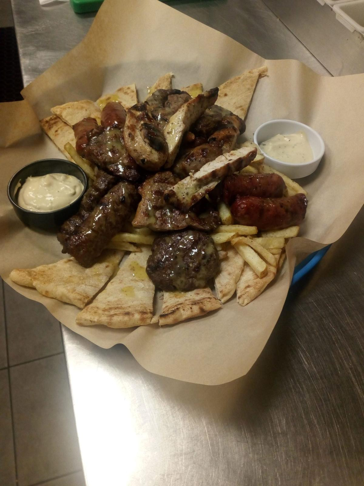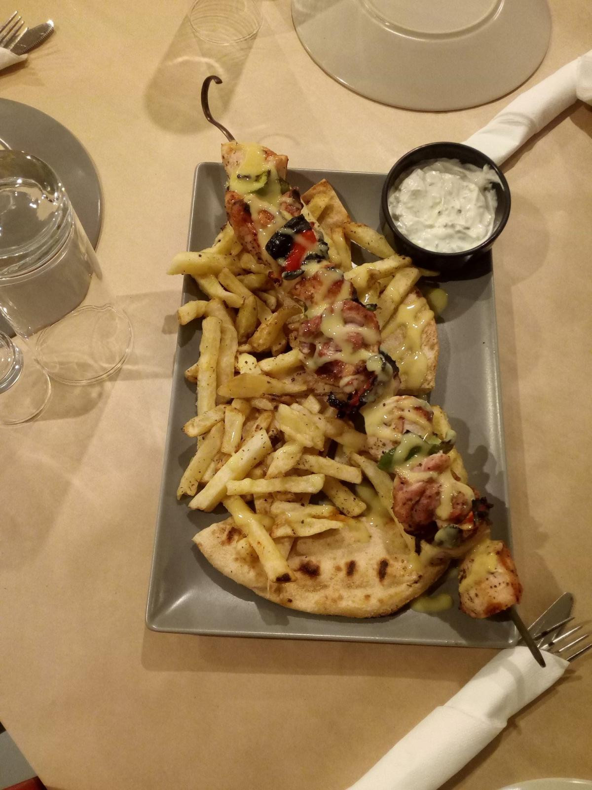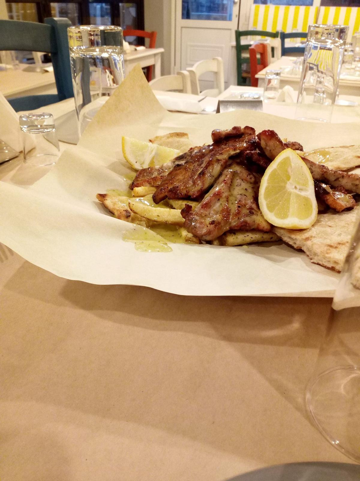 But to get to the most important part of this meal, start with a Cretan salad with carob nuts, spring onions, baby potatoes, egg and vinaigrette oil. To continue, you can choose from a Wrapped Slice of Honey and Sesame Sauce, Pastry Dumplings, Potatoes and more. But since there is no meatless evening, get ready for Pork Fried Chicken Bouquets in Verga, or if you can't choose, choose a Meat Trilogy that combines chicken, pork and veal in strips.