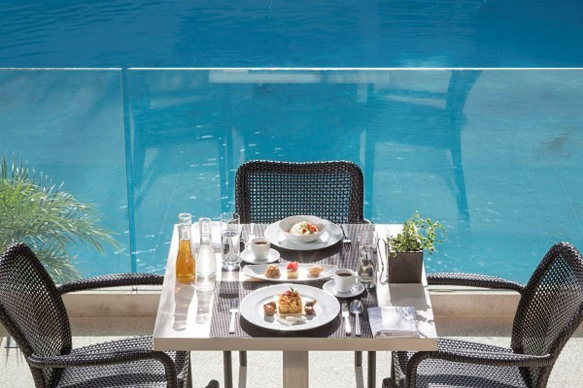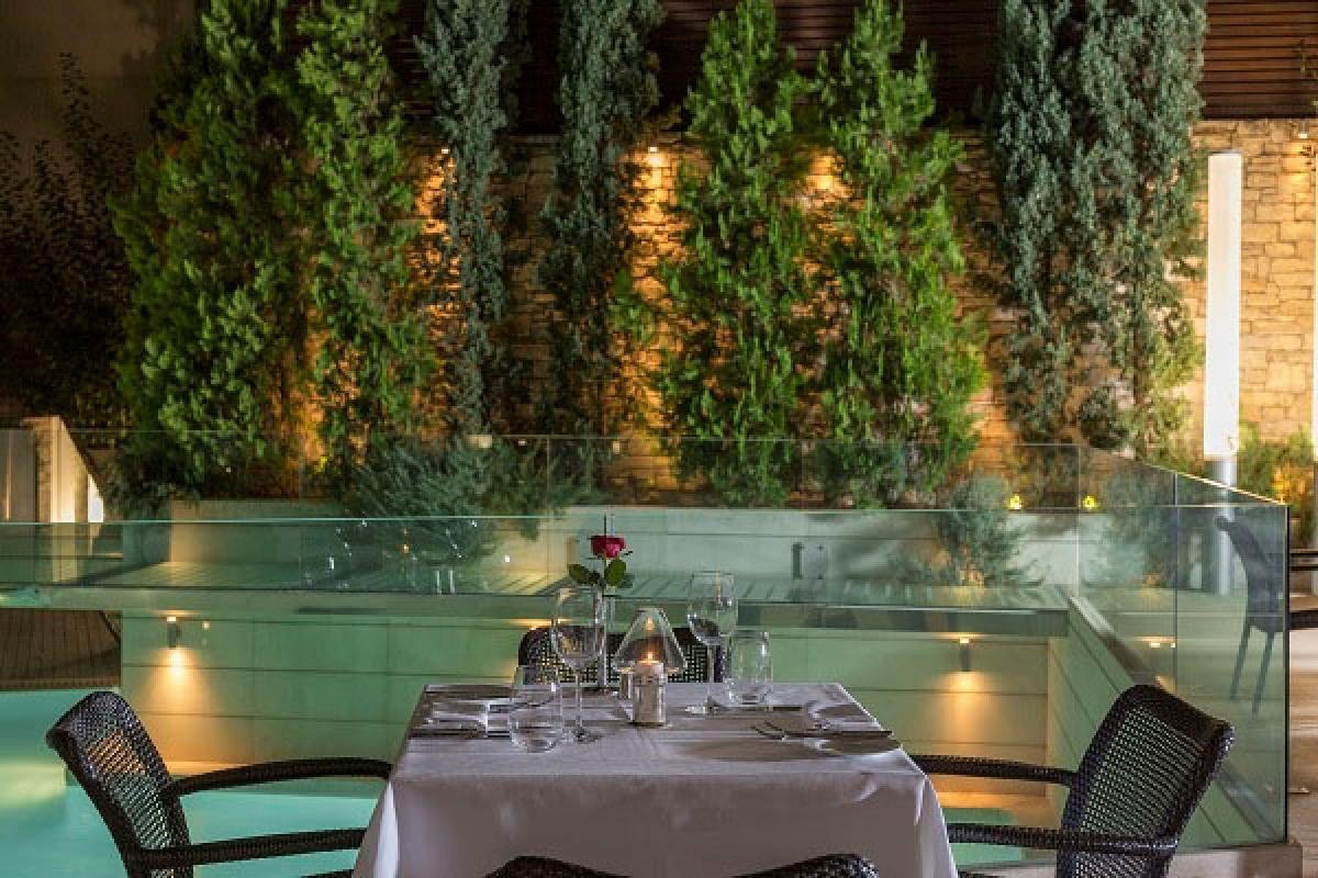 The scenery complements the tasty treat in an inspired pairing. The Vetri Restaurant, bathed in natural light from early morning to late at night, with windows to allow the blue of the pool to be inserted within, inviting locals and visitors to an experience for all the senses. The Vetri Restaurant is the ideal starting point of the day through a rich Cretan breakfast inspiration, as dictated by tradition and Cretan hospitality. At night, the inside is converted to atmospheric focal setting. During the summer months do not need to leave the oasis of the pool to eat. You can enjoy a wide variety of dishes, with light and healthy choices, fruit and refreshing cocktails.