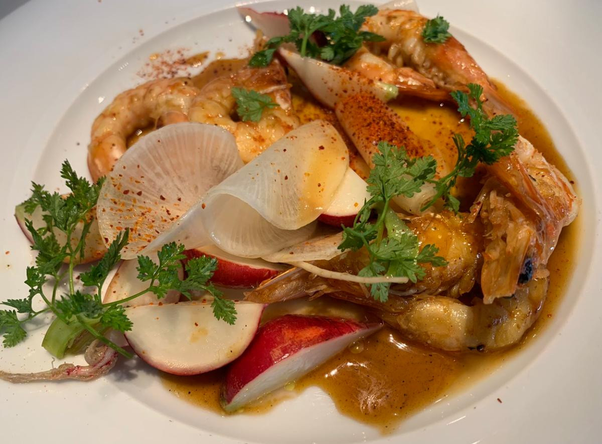 the fresh prawns with aromatic vanilla fava bean, orange zest, dill and chives,
