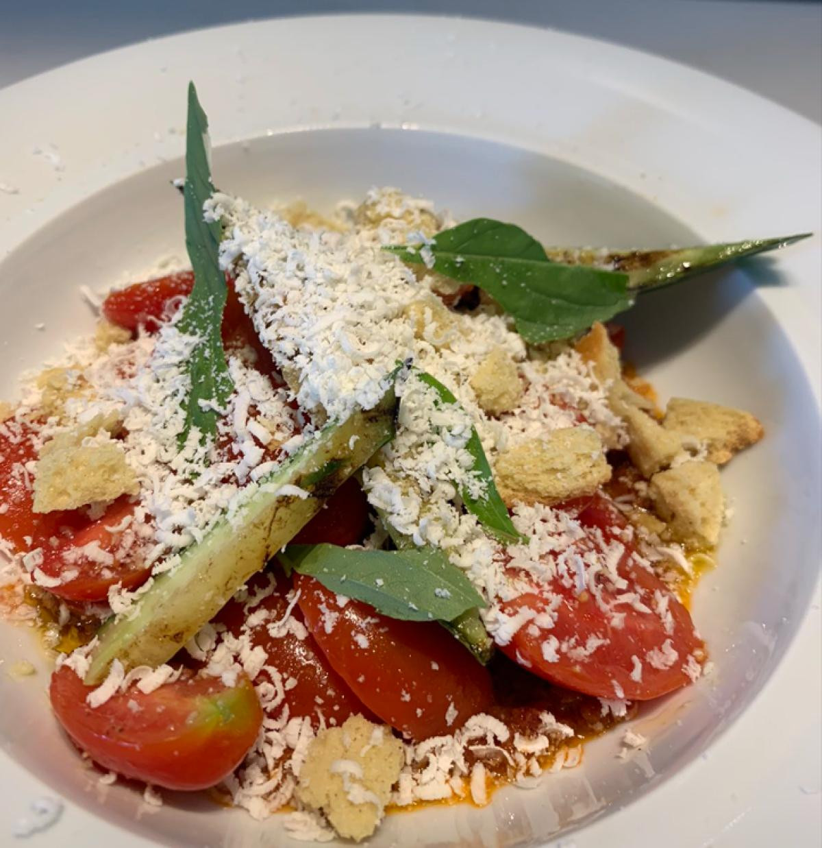tomato, Lefkadian bun, kalamata olives, cherry tomatoes, capers and herb oil,
