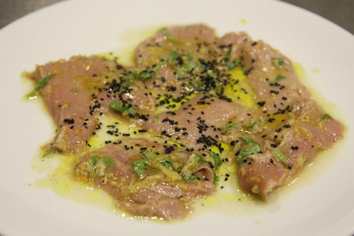 το ψάρι μαγειρεμένο με 4 τρόπους (σεβίτσε, ταρτάρ, τατάκι, κριθαράκι ). Όλα τα