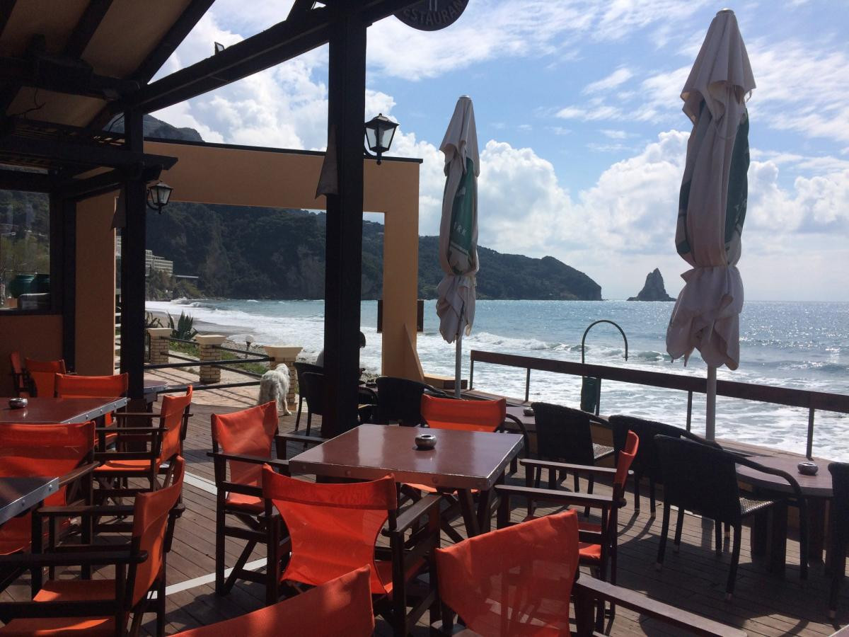 σκηνικό που δημιουργεί ο χώρος του εστιατορίου, ακριβώς πάνω στην παραλία,