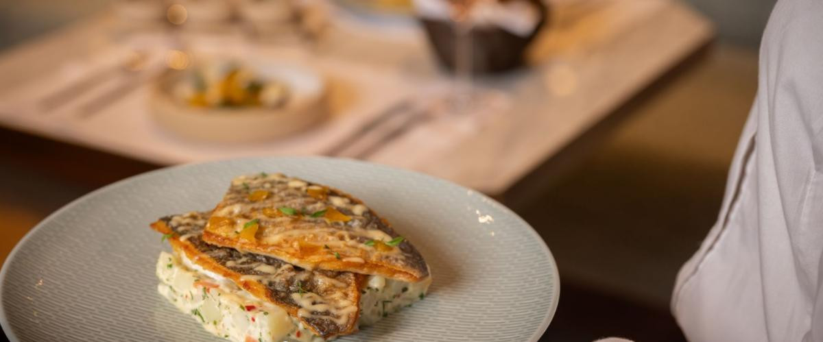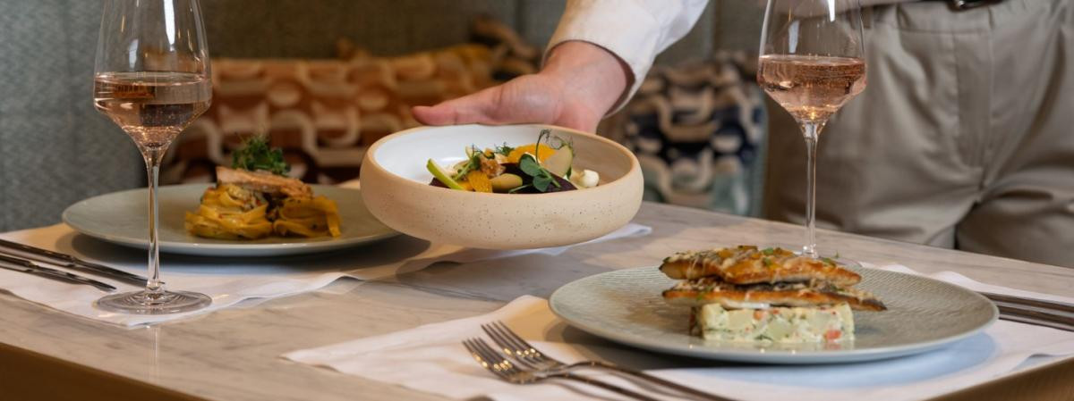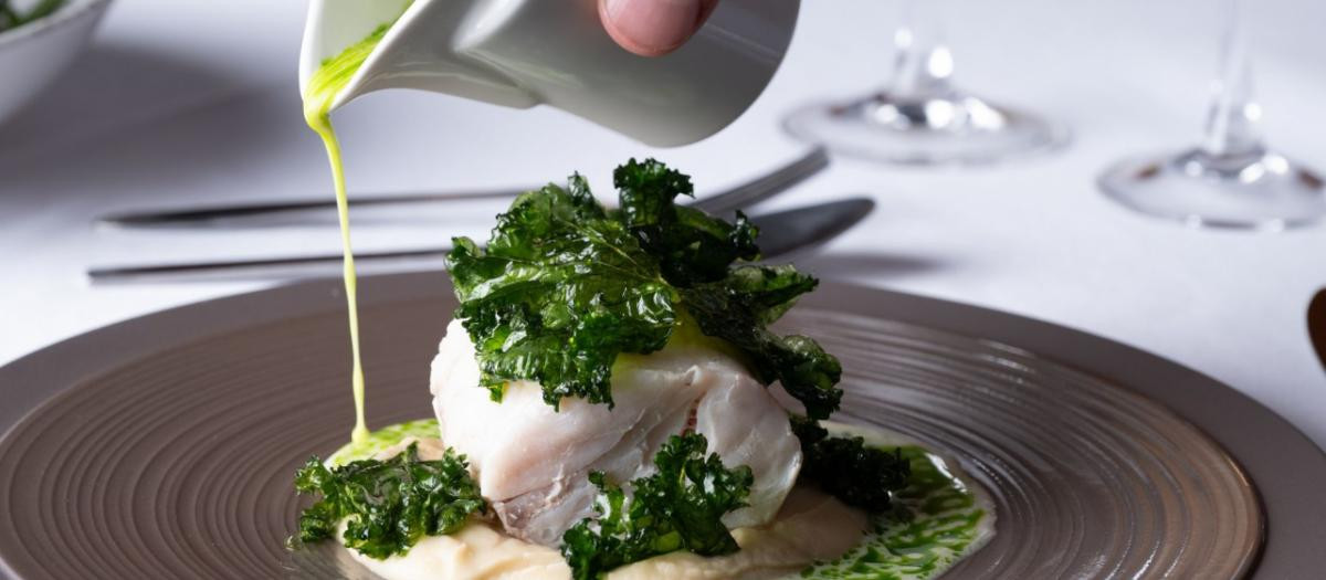 Η κουζίνα του Amber Cellar είναι εμπνευσμένη από την ελληνική παράδοση με μια σύγχρονη πινελιά, προσφέροντας πιάτα που αναδεικνύουν την ποιότητα των τοπικών προϊόντων. Το μενού περιλαμβάνει επιλογές από φρέσκα θαλασσινά, ζουμερά κρέατα και δημιουργικές χορτοφαγικές προτάσεις. Συνοδεύεται από μια προσεκτικά επιλεγμένη λίστα κρασιών που περιλαμβάνει ετικέτες από τον ελληνικό και διεθνή αμπελώνα.