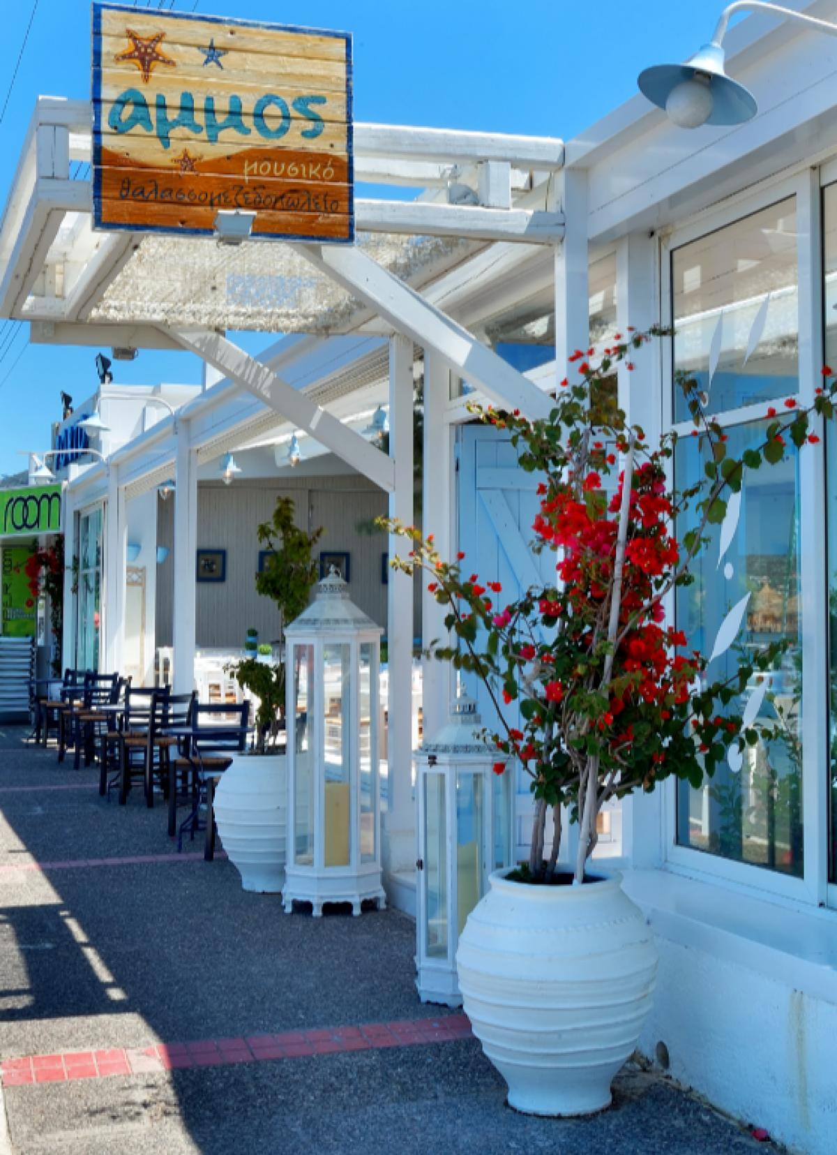 Δίπλα στο εκκλησάκι της Αγίας Μαρίνας,μπροστά στην θάλασσα, σε περιβάλλον που θυμίζει ελληνικό νησί…βρίσκεται το μουσικό θαλασσομεζεδοπωλείο Ammos Restaurant.Για άλλο ένα καλοκαίρι το μουσικό θαλασσομεζεδοπωλείο Ammos Restaurant στο Αυλάκι του Πόρτο Ράφτη, σας προσκαλεί να γευτείτε το φρέσκο ψάρι και τους θαλασσινούς του μεζέδες. Με γεύσεις που προκαλούν και θέα την θάλασσα, σας ταξιδεύει στα ελληνικά νησιά μας, απολαμβάνοντας ζωντανή μουσική και εξυπηρέτηση βασισμένη στην ελληνική φιλοξενία.Ο ανακαινισμένος μας χώρος, έχει τη δυνατότητα να φιλοξενεί 350 περίπου άτομα, με άφθονο χώρο πάρκινγκ, κι ενδείκνυται τόσο για βραδινές όσο και για μεσημεριανές εκδηλώσεις, με μενού και τιμές που ικανοποιούν και τους πιο απαιτητικούς. Αν βρίσκεστε στο Πόρτο Ράφτη και θέλετε να γευτείτε μοναδικά πιάτα θαλασσινών και μεσογειακής και ελληνικής κουζίνας υπό την συνοδεία ζωντανής μουσικής, τότε το μόνο που έχετε να κάνετε είνα να επισκεφθείτε το Ammos Restaurant στο Πόρτο Ράφτη. Τέλος μπορείτε να συνοδεύσετε το γεύμα σας με καλό κρασί ή ουζάκι , από τις επιλογές που διαθέτει το εστιατόριο Ammos Restaurant στο Πόρτο Ράφτη.