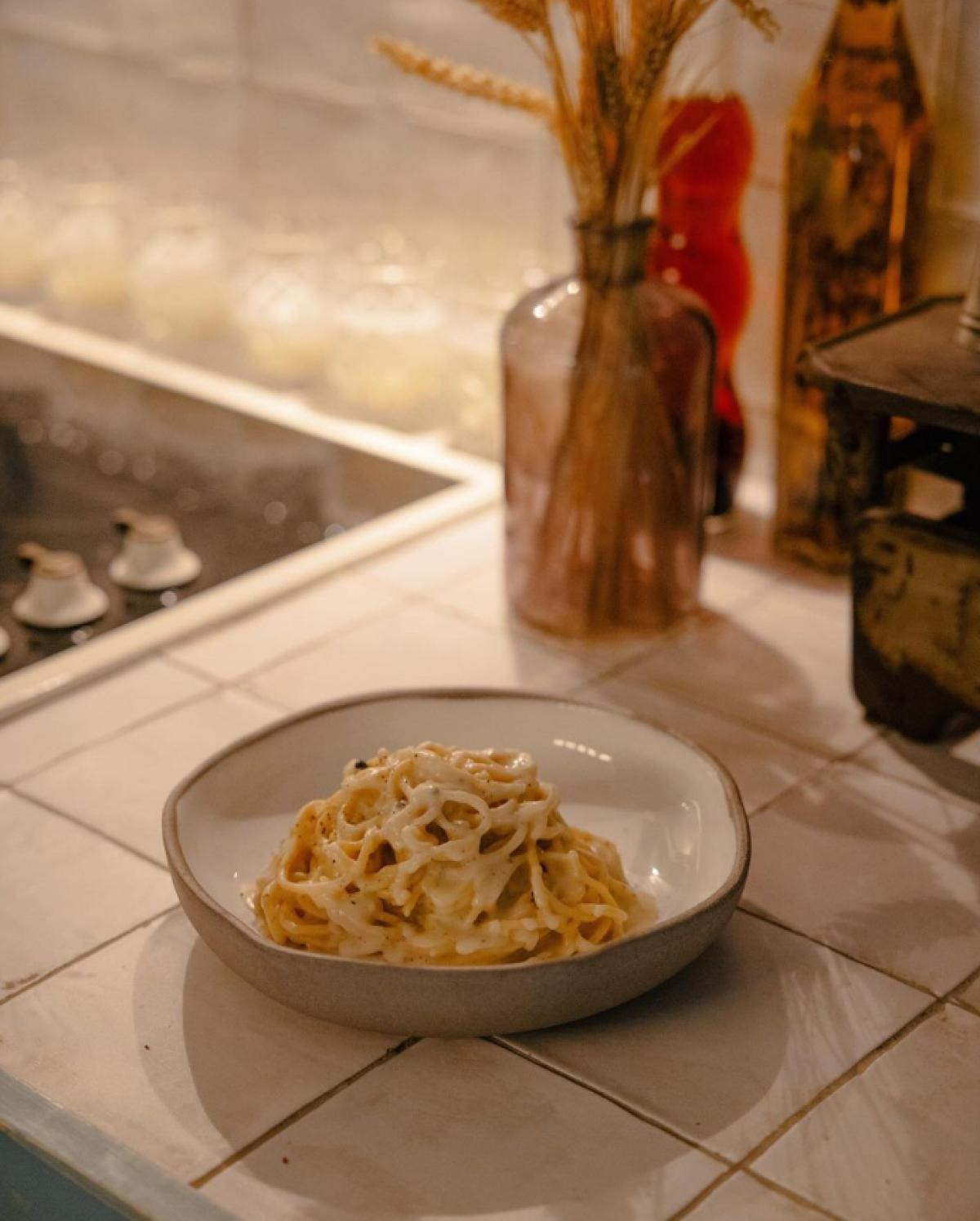 την burrata, αλλά και την amatriciana, την παραδοσιακή συνταγή μακαρονάδας που