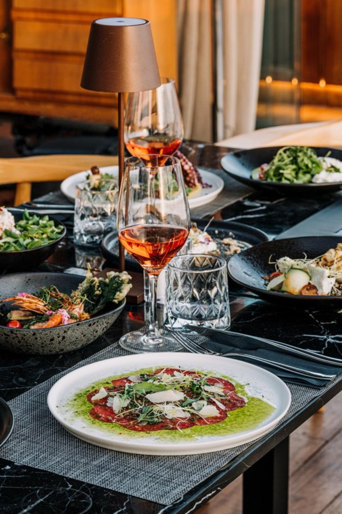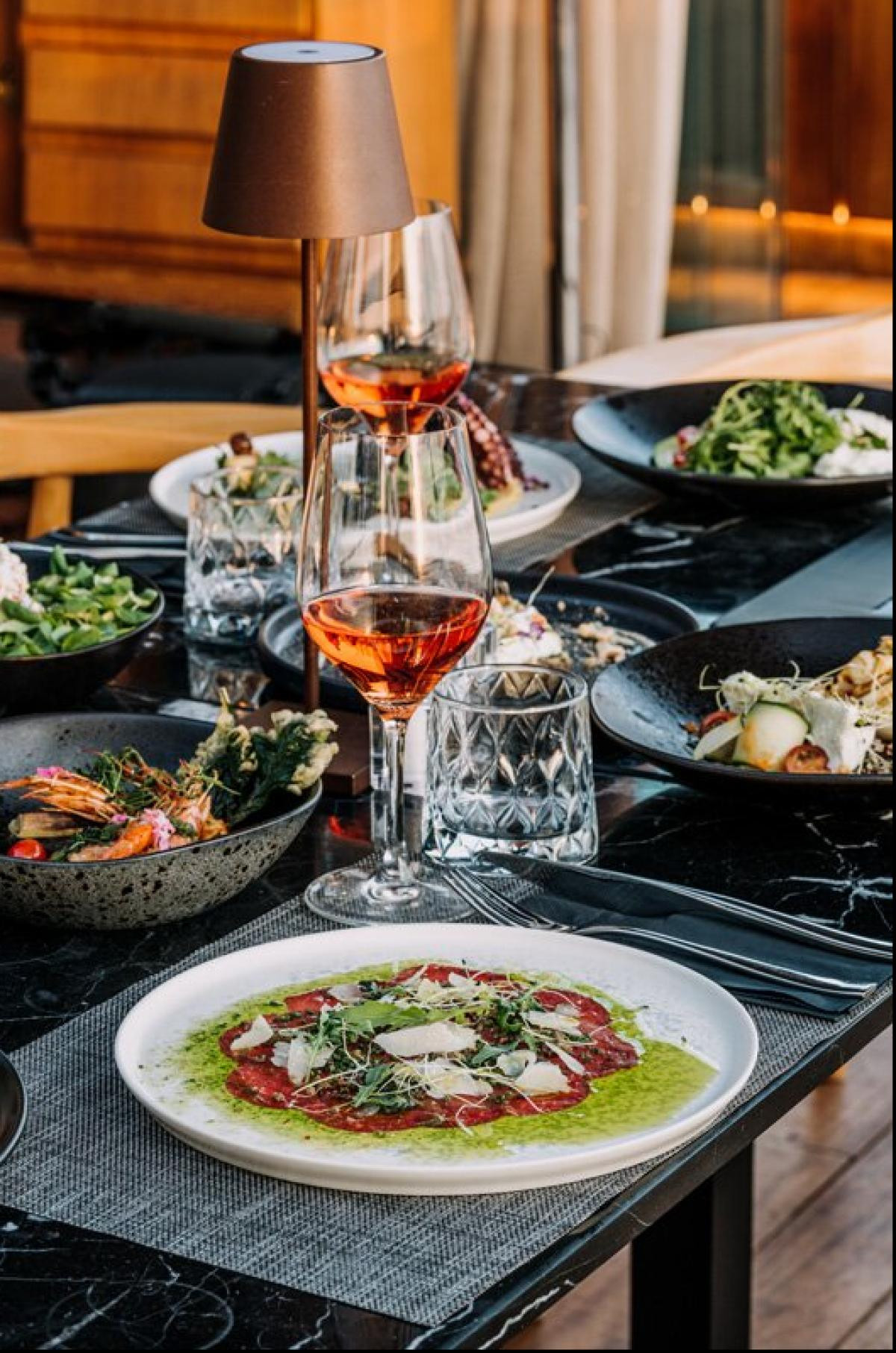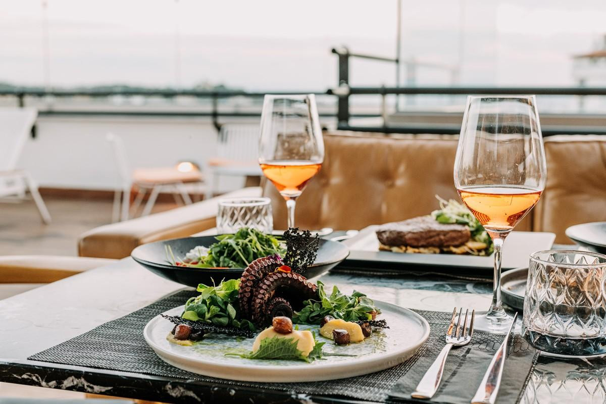 Πολύ ωραίες γεύσεις σε λιτό & περιεκτικό κατάλογο με όμορφες ποικιλίες κρασιών στον 9ο όροφο του ομώνυμου ξενοδοχείου με καταπληκτική θέα σε Ακρόπολη & Λυκαβηττό.