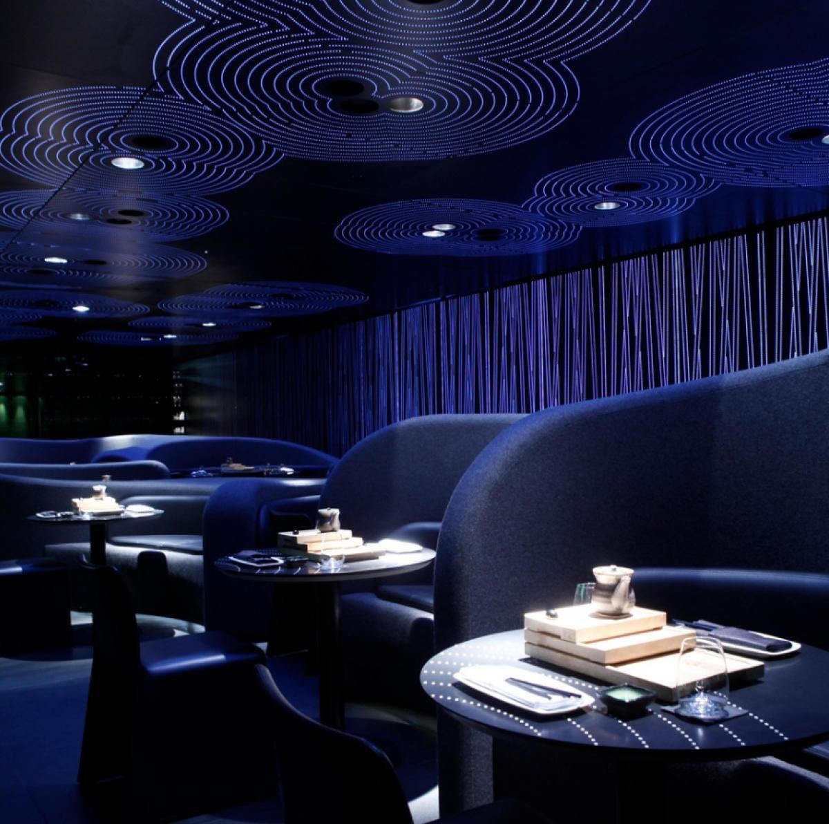 Ο χώρος του εστιατορίου είναι μοντέρνος, με minimalist διακόσμηση, που συνδυάζει πολυτελή υλικά όπως ξύλο και μέταλλο, προσδίδοντας μια αίσθηση κομψότητας και χαλάρωσης. Οι μεγάλοι γυάλινοι τοίχοι του προσφέρουν υπέροχη θέα στον εξωτερικό χώρο του ξενοδοχείου, δημιουργώντας μια μοναδική ατμόσφαιρα.