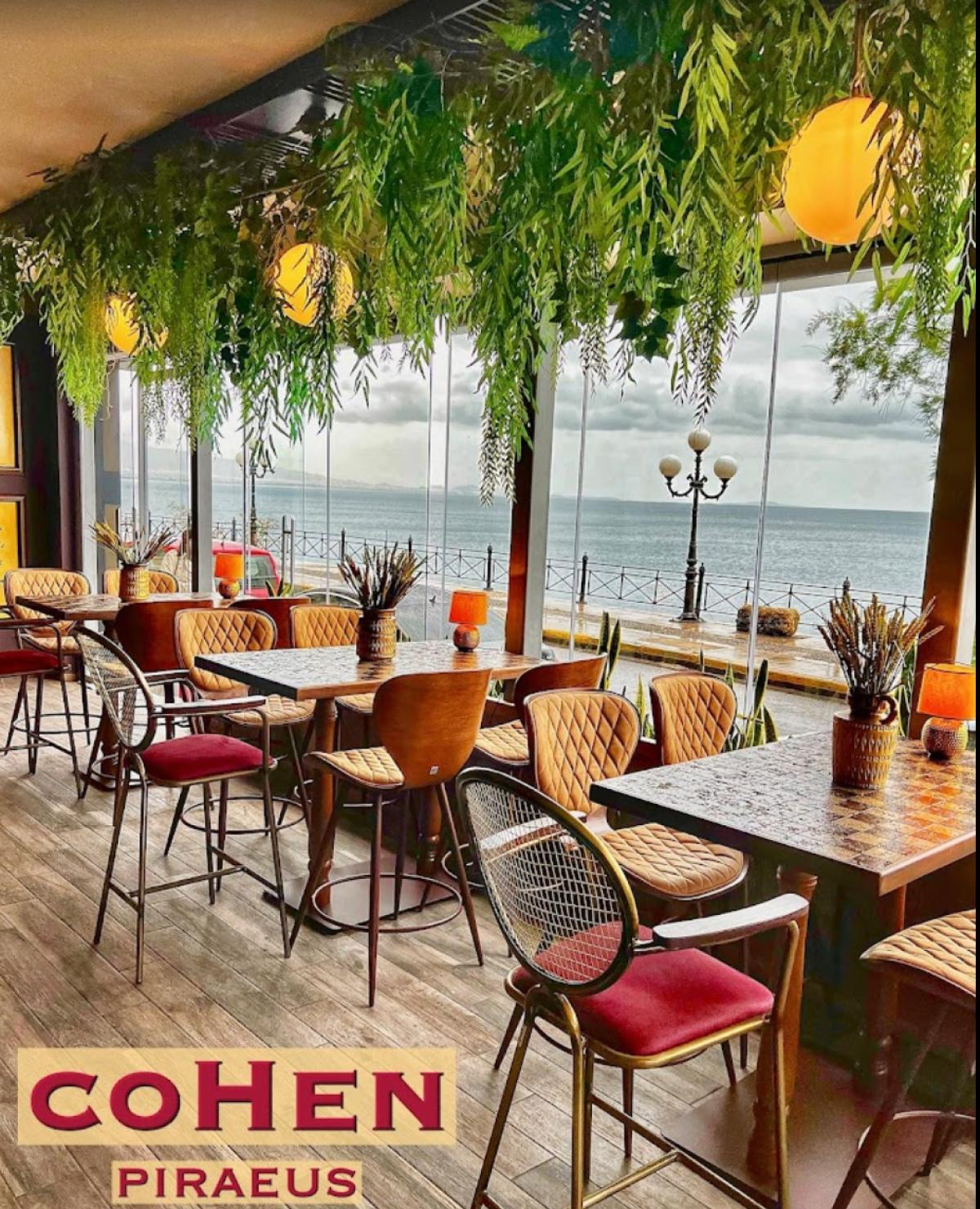 To εστιατόριο Cohen βρίσκεται στην Πειραΐκή στον Πειραιά κια σας υποδέχονται σε ένα μοναδικό χώρο δίπλα στην θάλασσα. Είναι ένα χώρος dinner , όπου μποείτε να απολαύσετε το γέυμα σας συνοδεύοντα το όμως και με το αγαπημένο σας ποτό. Το εστιατόριο Cohen σας προσφέρει πιάτα ελληνικής, μεσογειακής μαι ευρωπαΐκής κουζίνας για να τα απολάυσετε με την παρέα σας.Μπορείτε να απολαύσετε γευστικό brunch, νόστιμα ορεκτικά, κυρίως πιάτα που θα σας εκπλήξουν θετικά αλλά θα ικανοποιήσουν ακόμα και τους πιο απαιτητικούς ουρανίσκους.Μπορείτε επίσης να συνοδεύσετε το γεύμα σας με ένα ποτήρι κρασί από την μεγάλη λίστα που διαθέτει το εστιατόριο Cohen στον Πειραιά. Αν θέλετε να χαλαρώσετε μακριά από την φασαρία της πόλης με θέα την θάλασσα απολαμβάνοντας το αγαπημένο σας γεύμα, τότε το Cohen είναι η απόλυτη επιλογή !