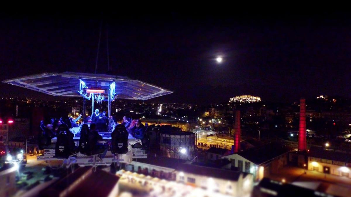 Το εστιατόριο Dinner In The Sky στην Τεχνόπολις Δήμου Αθηναίων στο Γκάζι, είναι απλά μια εμπειρία που μπορείτε να την απολαύσετε από Μάιο μέχρι τέλη Σεπτεμβρίου. Είναι αδύνατον να σκεφτούμε επιθετικούς προσδιορισμούς και σας αφήνουμε να την αποτυπώσετε μέσα από τις δεκάδες φωτογραφίες που θα τραβήξετε από τα 50 μέτρα ύψος. 22 άτομα έχουν την ευκαιρία κάθε φορά να δοκιμάσουν ένα εξαιρετικό μενού 5 πιάτων... Αλλά τι να λέμε για το φαγητό όταν μιλάμε για μια τέτοια μοναδική περίπτωση "εστιατορίου"?Anyway, στα δικά μας να δικαιολογήσουμε και το site μας τώρα! Αφού συνέλθετε από την θέα της Αθήνας θα δοκιμάσετε εξαιρετική φάβα Σαντορίνης με αλμυρό μπισκότο μαύρης ελιάς, confi ντοματάκι, καπαρόφυλλα & μαρμελάδα κρεμμυδιού με κρασί Vinsanto και δροσερή σαλάτα με κρέμα φέτας, σπαγγέτι αγγουριού, κίτρινη πιπεριά, dressing με μέντα, σχοινόπρασο & κουλούρι Θεσσαλονίκης αλλά και μαριναρισμένο σολομό με ουζάκι! Για κυρίως πιάτο δοκιμάστε φιλέτο μοσχάρι σε κενό αέρος με κρέμα καπνιστής λευκής μελιτζάνας, ενώ για επιδόρπιο σας περιμένει λαχταριστή καρυδόπιτα με κρέμα πικρής σοκολάτας και σάλτσα καραμέλας με μπαχαρικά.Στο εστιατόριο (λέμε τώρα) Dinner In The Sky στο Γκάζι θα δοκιμάσετε καταπληκτικά πιάτα αλλά αυτό που θα σας μείνει για χρόνια χαραγμένο είναι η θέα και η συνολική εμπειρία που θα έχετε την ευκαιρία να ζήσετε μαζί με άλλους 21 συνταξιδιώτες της γεύσεις και της θέας! Περιμένουμε με αγωνία τις φωτογραφίες σας και τα σχόλια σας για αυτό το μοναδικό concept όπως το Dinner in the Sky στην Αθήνα! Μήπως να κάνετε ένα tour σε όλη την Ελλάδα?