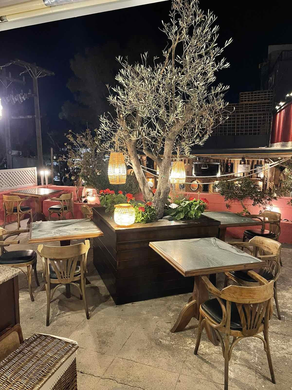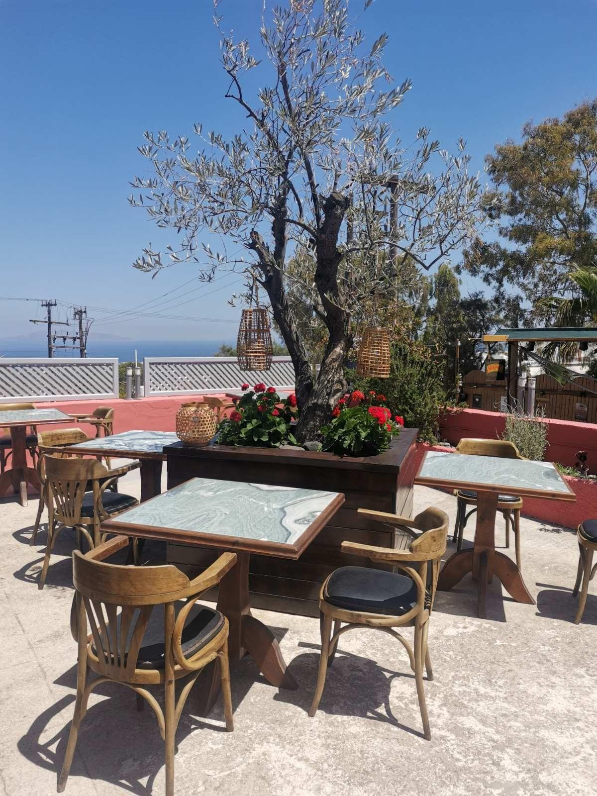 We have visited this restaurant many times when we have been in Fira, and the food and service is always excellent. The restaurant is not on the Caldera side, which means it is not so busy with tourists from the cruise ships. However it is set in a lovely garden looking over the flat side of the island and this setting gives it a very nice relaxed peaceful setting.