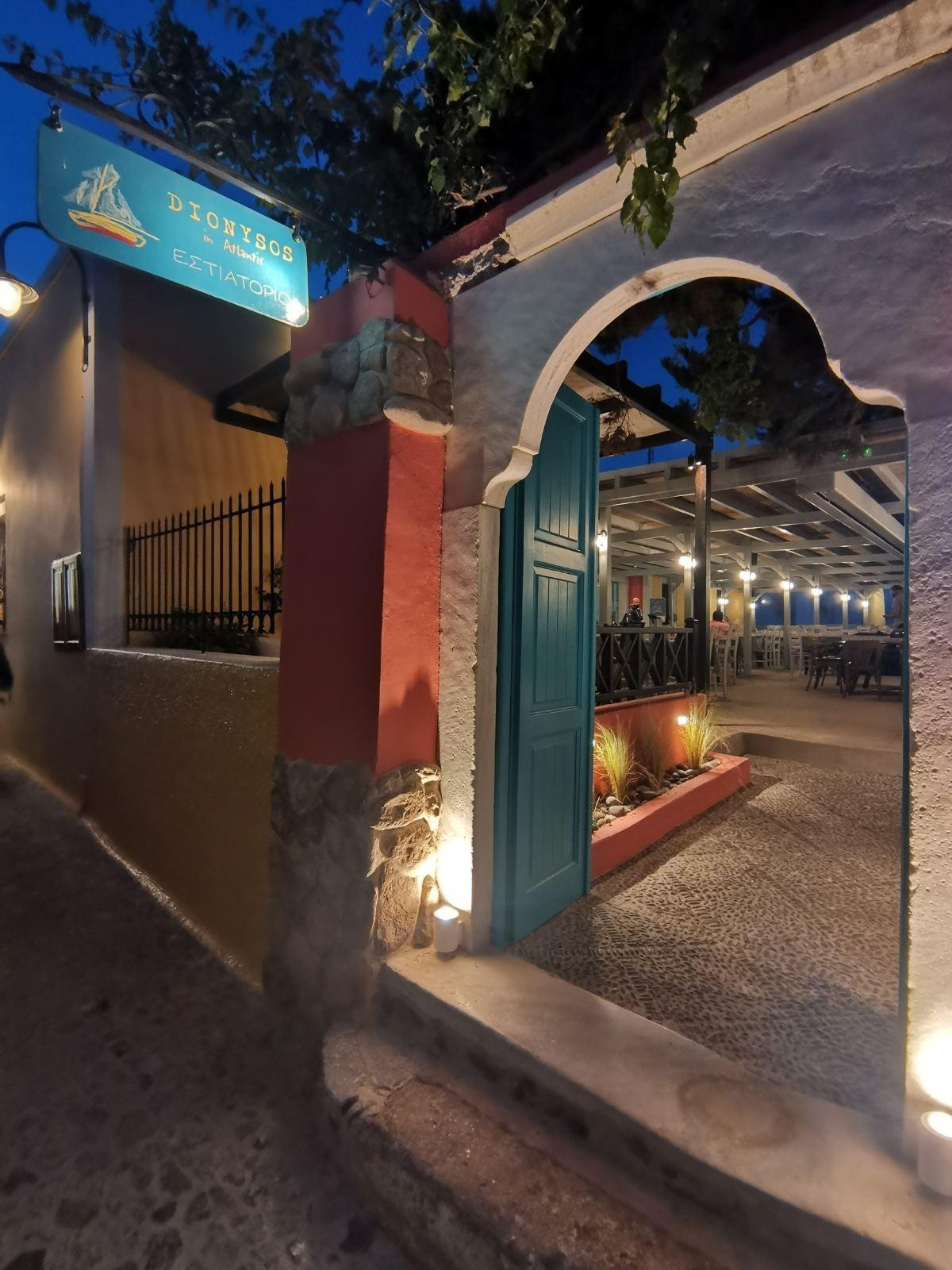 Εστιατόριο Dionysos In Atlantis στα Φηρά της Σαντορίνης. Εδώ και 29 χρόνια o Dionysos In Atlantis υποδέχεται τους επισκέπτες του στην πανέμορφη και ευρύχωρη αυλή του με την καταπληκτική θέα, σε απόλυτη αρμονία με το εξαιρετικό φαγητό που προσφέρει καθημερινά.