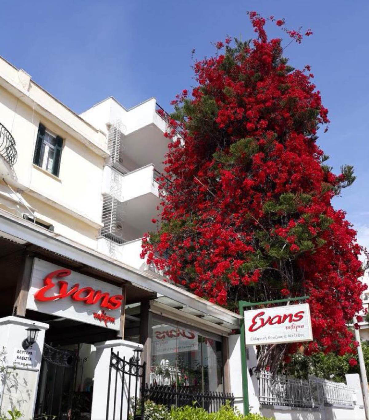 Το Evans taverna βρίσκεται στην Αθήνα στο Παλαιό Φάληρο και συγκεκριμένα στην οδό Αφροδίτης 57. Σας υποδέχονται σε έναν όμορφο χώρο για να απολάυσετε μοναδικά πιάτα και μεζέδες παραδοσιακής ελληνικής κουζίνας. Από το μενού του εστιατορίου Evans taverna μπορείτε να δοκιμάσετε δροσερές σαλάτες , νόστιμα ορεκτικά, τα σπιτικά μαγειρεμένα πιάτα όπως λαχανοντολμάδες, την σπεσιαλιτέ τους δηλαδή γίγαντες ψητούς, κοκκινιστά κεφτεδάκια, παστίτσιο ,ψητά της ώρας αλλά και πιάτα θαλασσινών , όπως καλαμάρι τηγανιτό, γαρίδες ψητές,σολωμό με βραστά λαχανικά και πολλές άλλες επιλογές που σας προσφέρει το εστιατόριο. Μπορείτε να συνοδεύσετε το γεύμα σας με ένα ποτήρι κρασί ή με γνήσια αποστάγματα από την μεγάλη ποικιλία του εστιατορίου. Επισκεφθείτε το Evans taverna στο Παλαιό Φάληρο και σίγουρα θα γίνει το νέο σας στέκι!