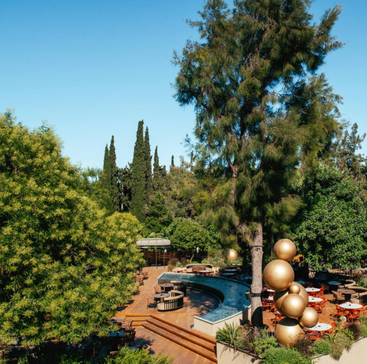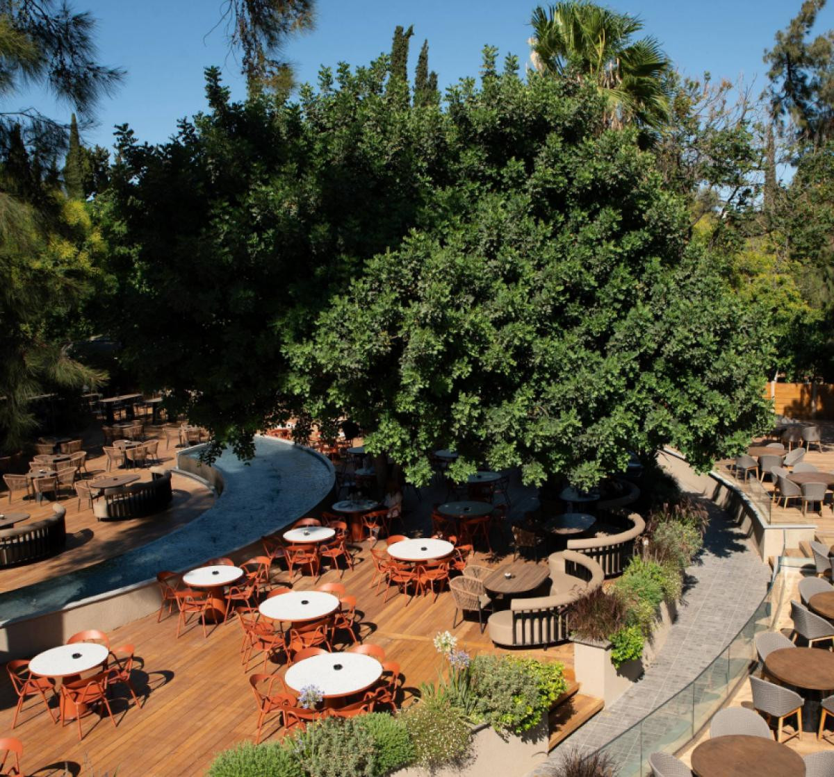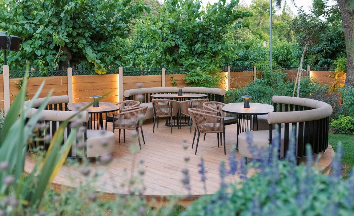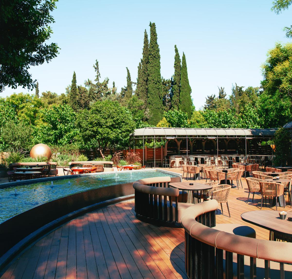 Στον εξωτερικό μας χώρο, μέσα στο άλσος του Πεδίου του Άρεως, θα βρείτε έναν ευρύχωρο, καταπράσινο κήπο με πλούσια βλάστηση και υδάτινα στοιχεία, που δημιουργούν το ιδανικό σκηνικό για εσάς. Αυτός ο κήπος θα ενθουσιάσει και τους μικρούς φίλους, καθώς προσφέρει έναν ιδανικά διαμορφωμένο χώρο αναψυχής, στην καρδιά της Αθήνας.