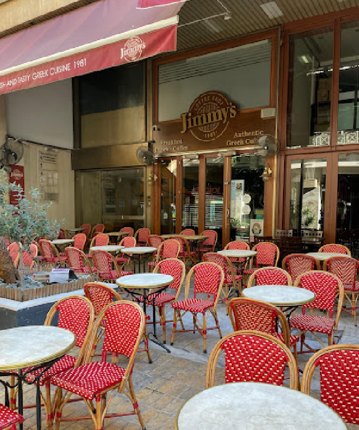 Το εστιατόριο Jimmy's στο Κολωνάκι της Αθήνας είναι ένας κλασικός και διαχρονικός χώρος που έχει καταφέρει να κερδίσει μια σταθερή θέση στις καρδιές των κατοίκων και των επισκεπτών της περιοχής. Βρίσκεται σε μία από τις πιο κοσμοπολίτικες και ζωντανές γειτονιές της πόλης, προσφέροντας έναν συνδυασμό από εξαιρετική κουζίνα και ευχάριστη ατμόσφαιρα.Το Jimmy's είναι γνωστό για την ποιοτική ελληνική κουζίνα του, με έμφαση στα φρέσκα υλικά και στις παραδοσιακές συνταγές που αναδεικνύουν τη γεύση και την ποιότητα. Στο μενού του μπορεί κανείς να βρει ποικιλία από ορεκτικά, σαλάτες, κυρίως πιάτα και επιδόρπια που ικανοποιούν και τους πιο απαιτητικούς πελάτες. Τα πιάτα είναι καλομαγειρεμένα, με γεύσεις που αντανακλούν την πλούσια γαστρονομική παράδοση της Ελλάδας, ενώ δεν λείπουν και οι πιο σύγχρονες δημιουργίες που δίνουν μια μοντέρνα πινελιά στο παραδοσιακό.