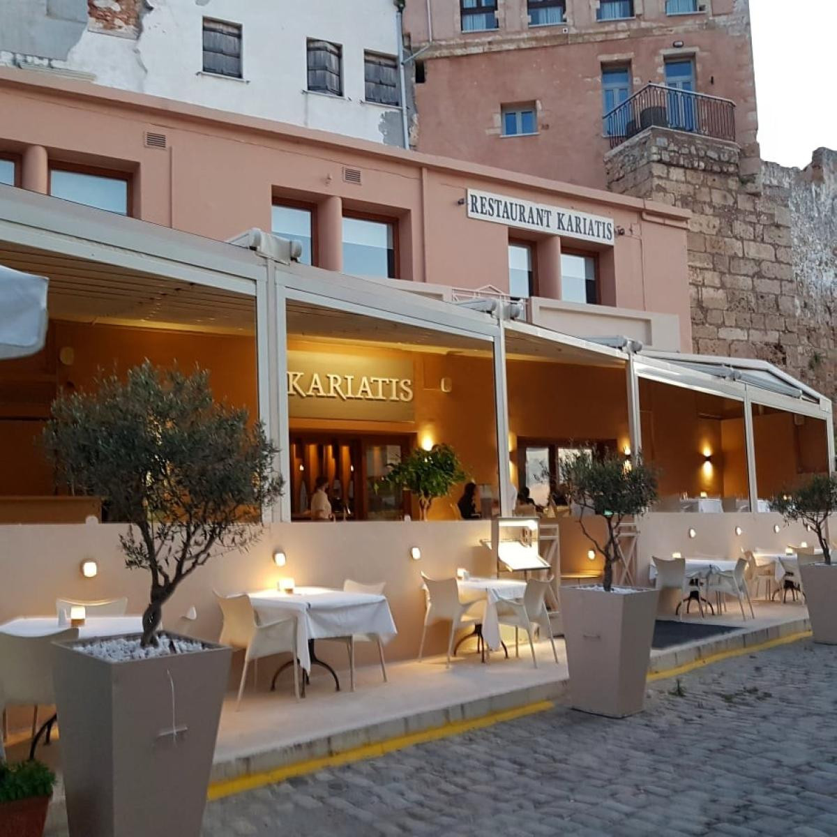 Το εστιατόριο Kariatis στα Χανιά θα το βρείτε Κατεχάκη 12 στο Παλιό Λιμάνι με το εστιατόριο να προτείνει θεϊκό φιλέτο μοσχαρίσιο, οσκαρικό rib eye, φρεσκότατους θαλασσινούς ψαρομεζέδες, καταπληκτικής ποιότητας κιτρινόπτερο τόνο, πεντανόστιμες πίτσες σε αρκετά μεγάλη ποικιλία, και το ταξίδι γεύσεων συνεχίζεται με το εξαιρετικό sushi bar του εστιατορίου να προτείνει πεντανόστιμα εδέσματα που δεν πρέπει να χάσετε! Για γνήσιο ιταλικό φαγητό με ιδιαίτερες γεύσεις σε ένα ατμοσφαιρικό και ονειρικό περιβάλλον η επιλογή του εστιατορίου Kariatis είναι πραγματικά μονόδρομος.. Ένας μονόδρομος που θα λατρέψετε! Μην το χάσετε.. Ελάτε σήμερα κιόλας, στο εστιατόριο Kariatis στα Χανιά.