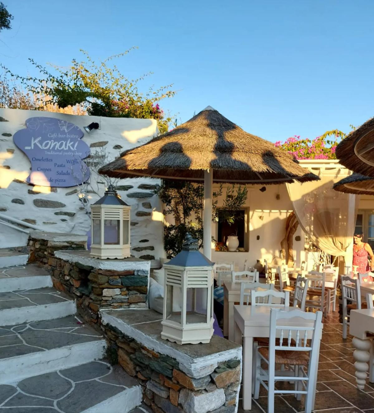 Καλώς ορίσατε στο cafe-bistro Konaki.To Konaki βρίσκεται στην Σίφνο. Σας υποδέχεται σε έναν μοναδικό χώρο για να απολάυσετε το γεύμα σας με την παρέα σας αλλά και μοναδικά γλυκά που θα σας εντυπωσιάσουν.Μπορείτε να δοκιμάσετε λαχταριστές μακαρονάδες ,ζουμερές ομελέτες και club sandwich, χειροποιήτη πίτσα,βάφλες,γλυκά και αλμυρά pancakes αλλά κια πολλές άλλες επιλογές που θα βρείτε στιο μενού του cafe-bistro Konaki στην Σίφνο. Μην παραλείψετε να δοκιμάσετε τα λαχταριστά γλυκά που ετοιμάζουν στο Konaki, όπως μπακλαβά, ζουμερή σοκολατοπίτα αλλά και διάφορα είδη χειροποίητων γλυκών που θα βρείτε στο Konaki στην Σίφνο. Επισκεφθείτε το Konaki στην Σίφνο και γευτείτε μοναδικές γεύσεις αλμυρών και γλυκών πιάτων.