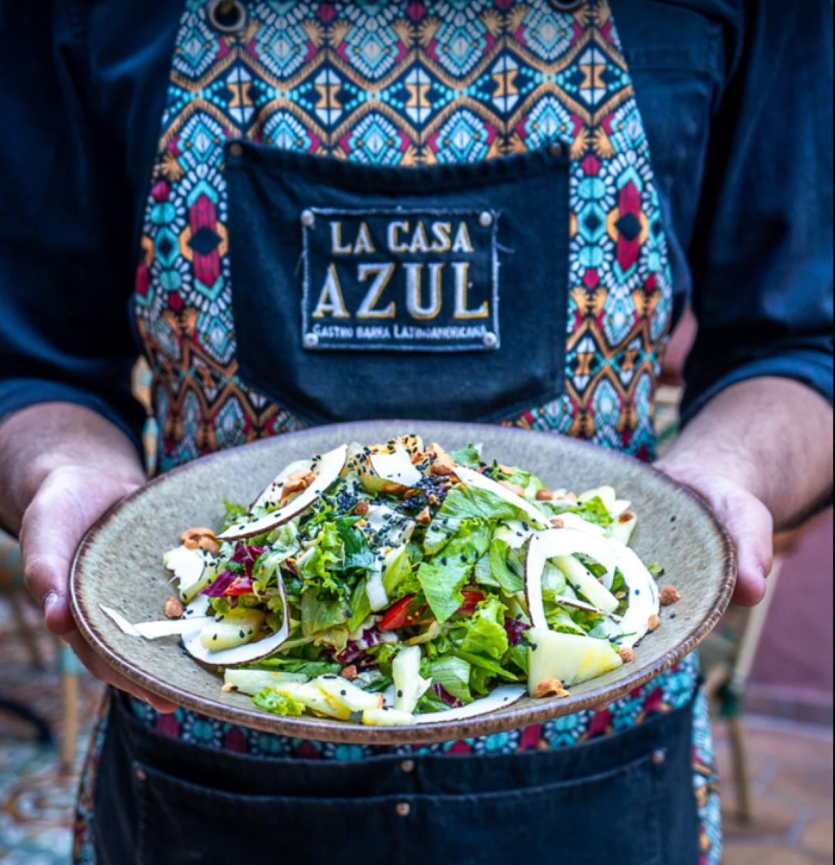 Το La Casa Azul βρίσκεται στο Περιστέρι και έχει νοτιοαμερικανική καρδιά και ιδιαίτερη αγάπη για τη Frida Kahlo.Το La Casa Azul προτείνει από brunch latino μέχρι patatas bravas, tacos al pastor, paella mixta και enchiladas con carne asada,Σας περιμένουν να τα απολαύσετε στην πολύχρωμη αυλή του La Casa Azul στο Περιστέρι,τα πεντανόστιμα πιάτα τους , τα οποία είναι εμπνευσμένα από την Μεξικάνικη κουζίνα.