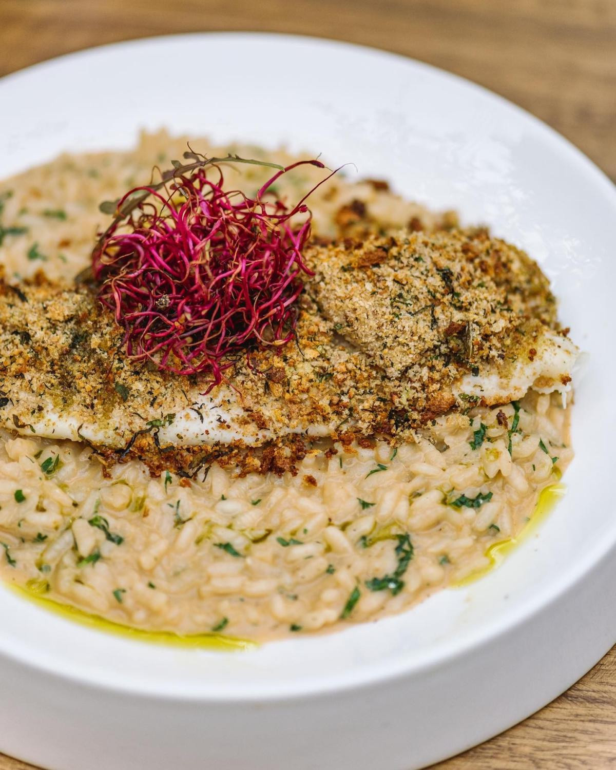 πορτοκάλι, βαλεριάνα και dressing, το osso busso με ριζότο μανιταριών, και