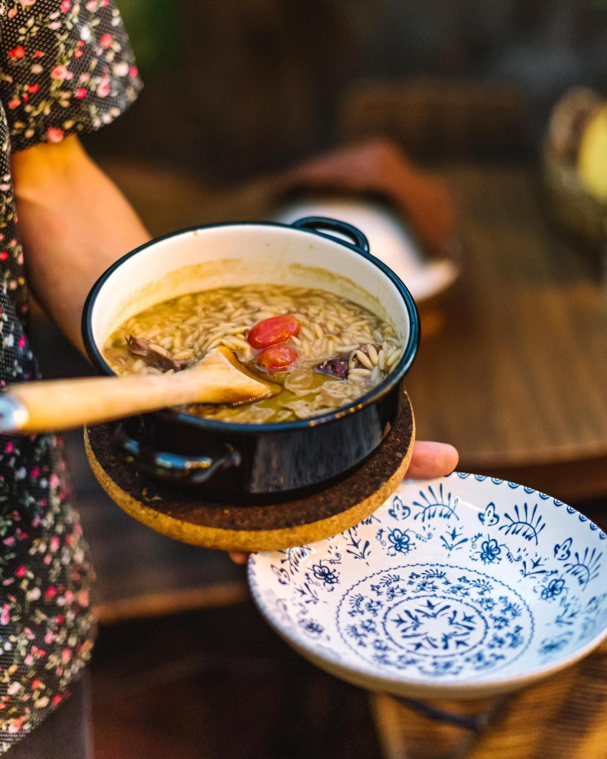 προαναφερθείσες, πανδαισίες γεύσεων… την καταπράσινη αυλή του. Το προσωπικό