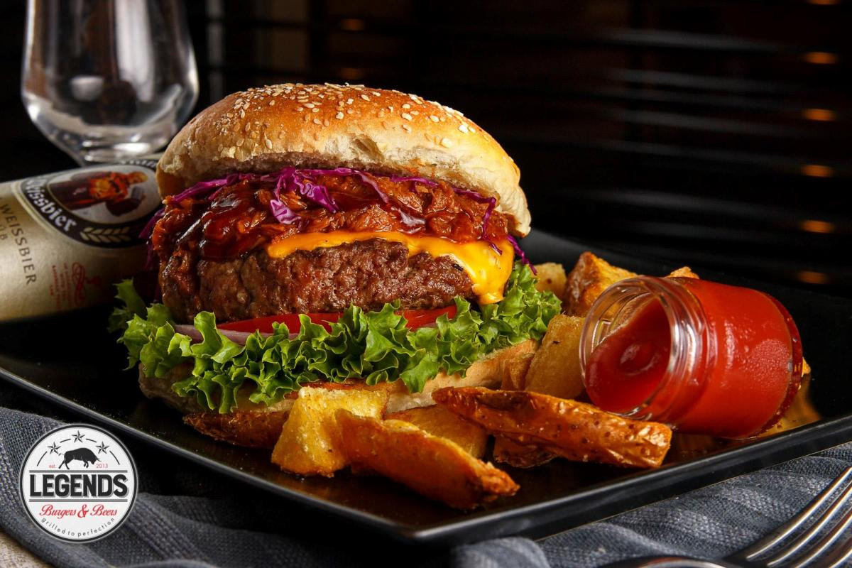 Για όσους πιστεύουν ότι τα Burgers είναι καθαρά αμερικανική υπόθεση, το Legends Burgers and Beers στα Χανιά είναι εδώ για να τους διαψεύσει. Ένας ύμνος στην αμερικάνικη κουζίνα σε ένα χώρο με έντονες επιρροές από τα 80’s και σινεμά εκείνης της εποχής, pop, blues, funk και soul μουσική και, το καλοκαίρι, σε μία μαγευτική αυλή που υπόσχεται αξέχαστα ηλιοβασιλέματα. Τα εξαιρετικά υλικά και η ...μυστική συνταγή για τα αφράτα ψωμάκια είναι πάντα προτεραιότητα, όπως και το άριστο ψήσιμο των κρεάτων.Το Legends Burgers and Beers θα το βρείτε στην οδό Προφήτη Ηλία 68, λίγο έξω από την πόλη των Χανίων, στην περιοχή Χαλέπα, και θα ανακαλύψετε τον τέλειο συνδυασμό των όρων Burger House και Grill House. Θα κληθείτε να επιλέξετε ανάμεσα από 27, παρακαλώ, είδη burger, αγαπημένα αμερικάνικα συνοδευτικά πιάτα και, φυσικά, λαχταριστά ζουμερά κρέατα. Ξεκινήστε με Bacon Cheese Fries, Chicken fingers (με σως μέλι-μουστάρδα), και συνεχίστε με Jack Daniels Burger, Mac and Cheese Burger, Buffalo Burger, αλλά και Salmon Burger, Spare ribs, υπέροχες μπριζόλες και Chicken Flerentine με μανιτάρια, σπανάκι, κρέμα γάλακτος και παρμεζάνα.Για να κλείσουμε, το Legends Burgers and Beers στα Χανιά, σας επιφυλάσσει και άλλες, όχι μόνο γευστικές εκπλήξεις, με μία γιγαντοοθόνη 3Χ2 μέτρα που κάθε Τετάρτη προβάλει αγαπημένες ταινίες, χωρίς επιπλέον χρέωση και με μουσικές βραδιές Σαββάτου που θα απογειώσουν τη διάθεσή σας.
