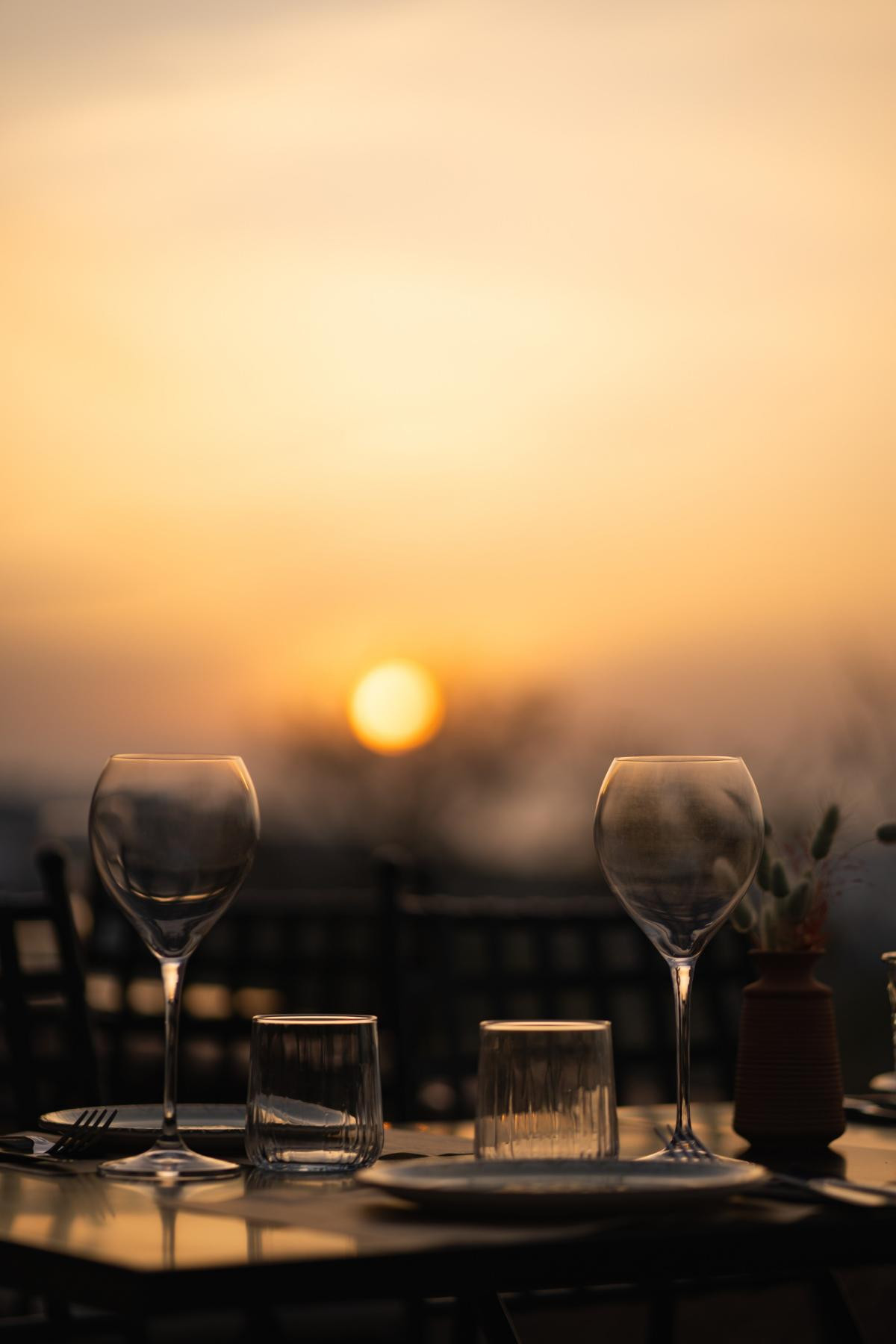 Styling - although the restaurant markets itself as quite fancy (and the prices reflect this) the tables were fairly cheap feeling outdoor patio ones, the tablemats were paper sheets, neither matched the fine glassware or smart plates. It was a real shame that the room does not maximise the wonderful sunset view they could have.