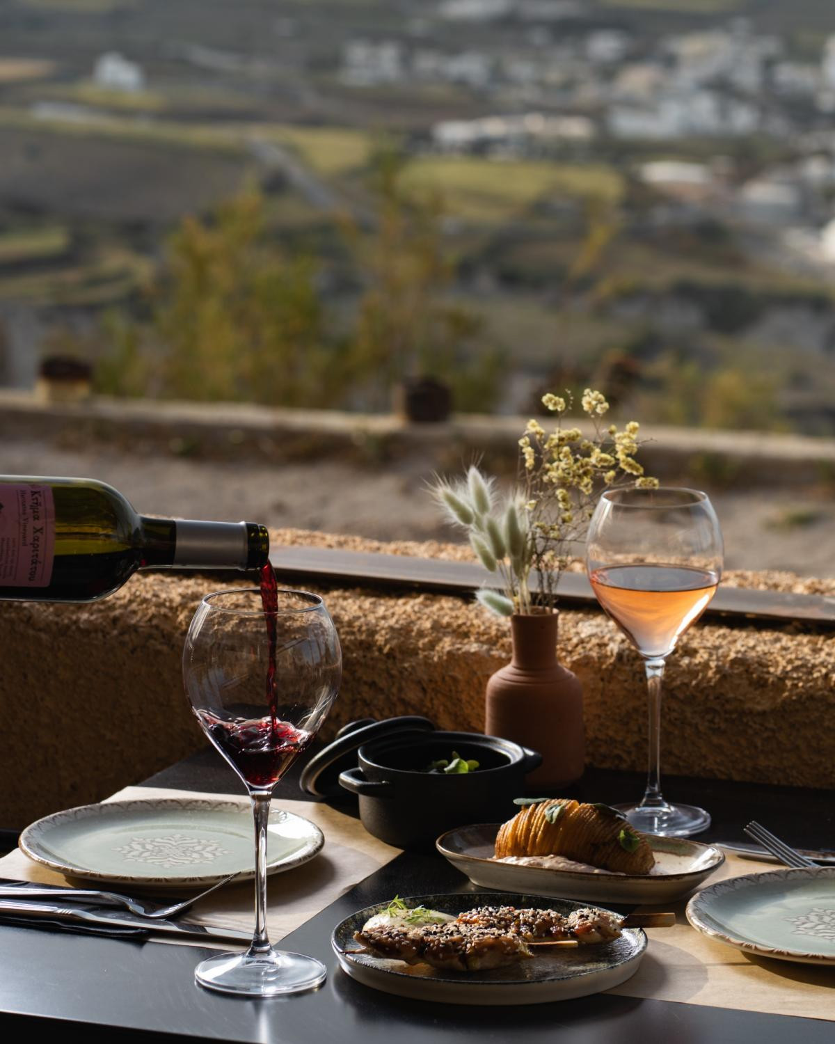 Στο εστιατόριο Madame sousou, η λίστα είναι ανεξάντλητη και προσκαλεί τον επισκέπτη να αφεθεί στα χέρια των δημιουργών της, απολαμβάνοντας τα νόστιμα πιάτα του, με ένα ποτήρι λευκό κρασί από Σαντορινιό αμπελώνα ή ένα ποτήρι αφρώδη οίνο, μια εξαιρετική επιλογή για να χαθείς στα χρώματα του ουρανού την ώρα που δύει ο Ήλιος... Εμείς με την σειρά μας επιλέξαμε ένα γευστικό μπουκάλι κρασί από την μεγάλη λίστα, η οποία αποτελείται αποκλειστικά από ελληνικά αποστάγματα, που αλλού… στο εστιατόριο Madame Sousou στον Πύργο Σαντορίνης.