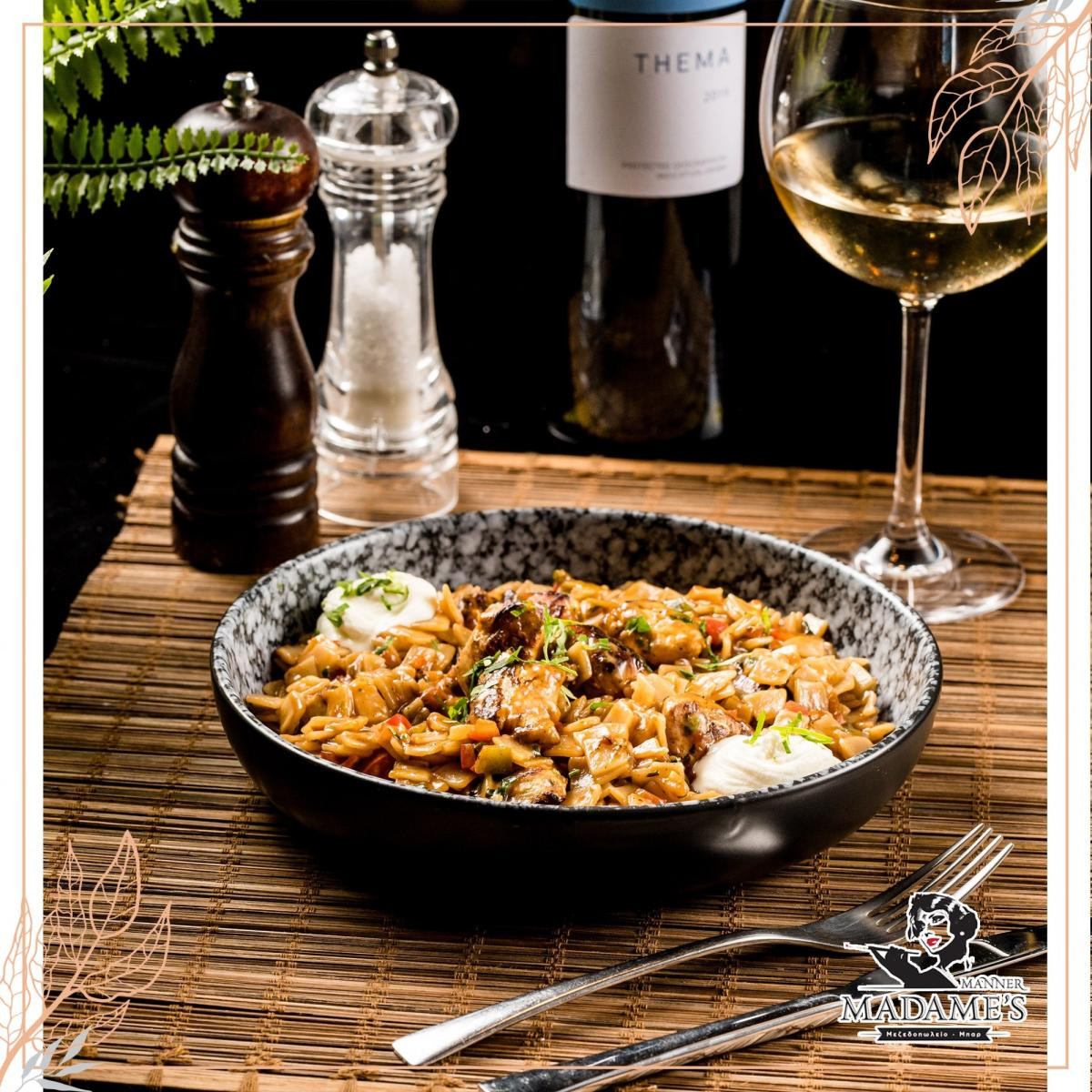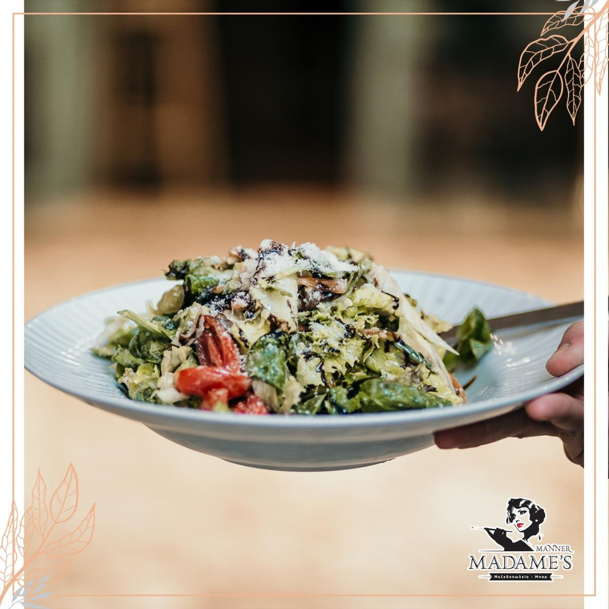 Το μεζεδοπωλείο μπαρ «Μαντάμ» στην Θεσσαλονίκη σας υποδέχεται και σας προσφέρει αγαπημένες γεύσεις της Μεσογειακής κουζίνας.Στην Πλατεία Ευόσμου, στην οδό Παύλου Μελά 29 στην Θεσσαλονίκη , έχετε τη δυνατότητα να το επισκεφθείτε καθημερινά και να δοκιμάσετε υπέροχα πιάτα, όπως ριζότο με κοτόπουλο, ριζότο θαλασσινών, σαλάτα Καίσαρα, χοιρινή τηγανιά, λαυράκι, αλλά και πολλές ακόμη επιλογές..