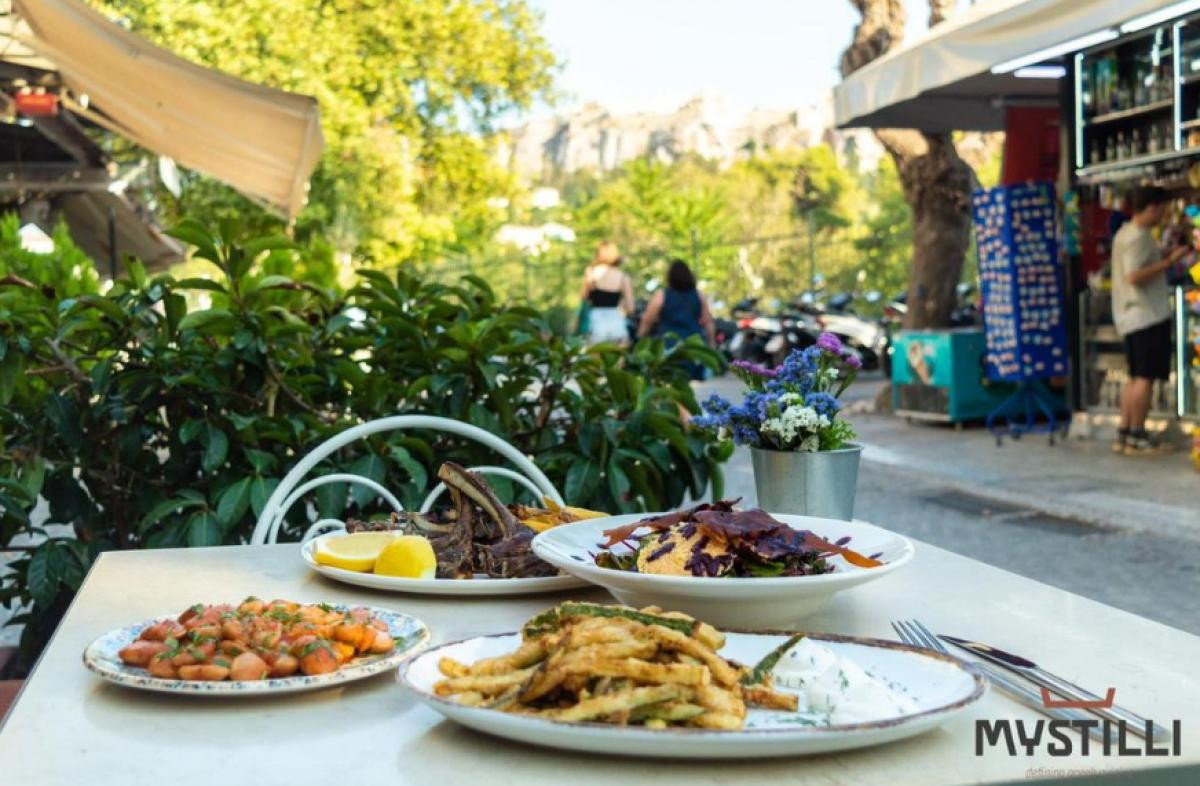 Το εστιατόριο προσφέρει επίσης μια εξαιρετική λίστα κρασιών με επιλογές από τον ελληνικό και διεθνή αμπελώνα, ενώ η ατμόσφαιρα είναι ιδανική τόσο για ρομαντικά δείπνα όσο και για συναντήσεις με φίλους ή οικογένεια. Το Mystilli, με τη μοναδική τοποθεσία του στο Θησείο, προσφέρει εξαιρετική θέα στην Ακρόπολη, προσθέτοντας μια ιδιαίτερη νότα στη συνολική εμπειρία.