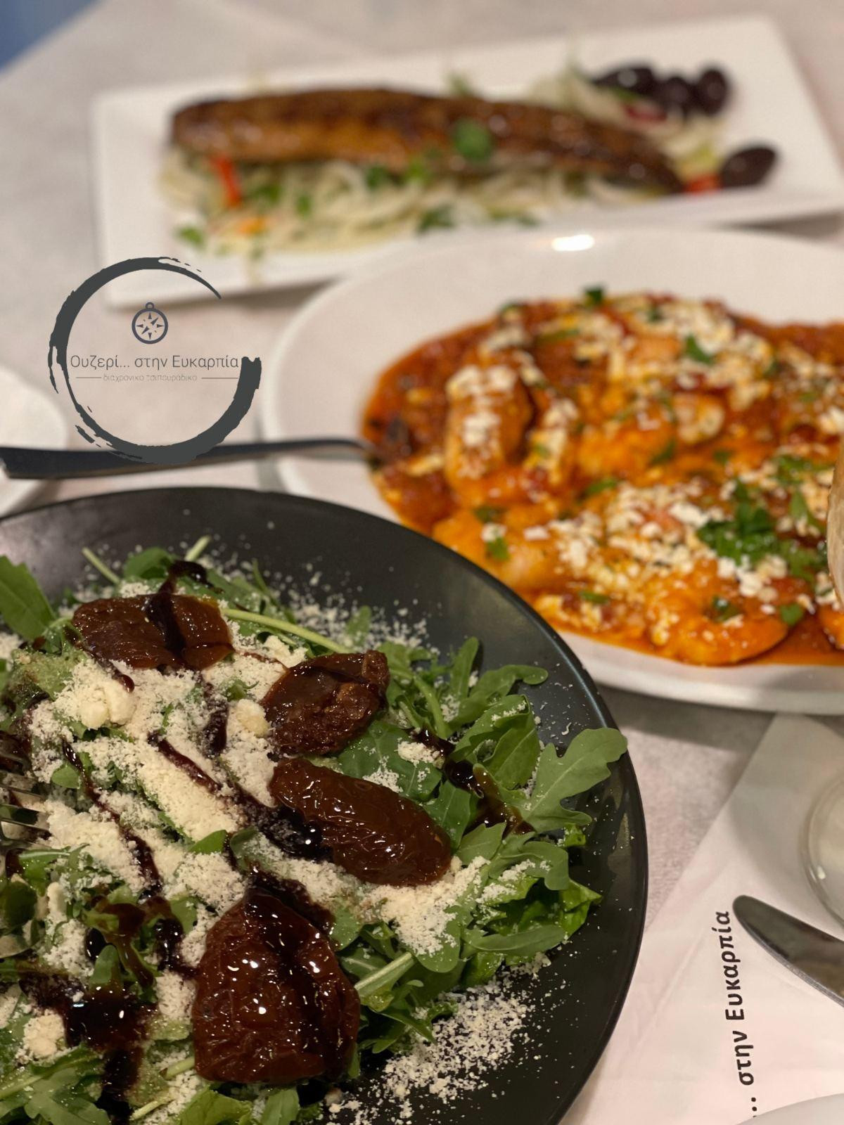 Το Ουζερί… στην Ευκαρπία βρίσκεται στην Ευκαρπία της Θεσσαλονίκης , όπως δηλώνει άλλωστε και το όνομά του και συγκεκριμένα στην οδό 25ης Μαρτίου 62. Σας περιμένουν σε έναν ζεστό και φιλόξενο χώρο για να δοκιμάσετε νόστιμα πιάτα εμπνευσμένα από την μεσογεική κουζίνα.Τα πιάτα στο Ουζερί… στην Ευκαρπία ετοιμάζονται για εσάς και την παρέα σας με τα πιο φρέσκα και αγνά υλικά,που θα ικανοποιήσουν και τον πιο απαιτητικό ουρανίσκο.Δοκιμάστε γαλέο σαγανάκι,καλαμάρι σχάρας,καλαμάρι τηγανητό,μύδια αχνιστά, θαλασσοπίλαφο,γαριδομακαρονάδα,χειροποίητο μοσχαρίσιο μπιφτέκι,μπουγιουρντί αλλά και χειροποίητους κολοκυθοκεφτέδες.Εννοείται πως δεν θα παραλείψετε να συνοδεύσετε το γεύμα σας με εκλεκτό ούζο,αλλά και με κρασί από τις διάφορες επιλογές που διαθέτει το Ουζερί… στην Ευκαρπία. Επισκεφθείτε το Ουζερί…στην Ευκαρπία στην Θεσσαλονίκη για ένα ταξίδι γεύσης στη Μεσόγειο.