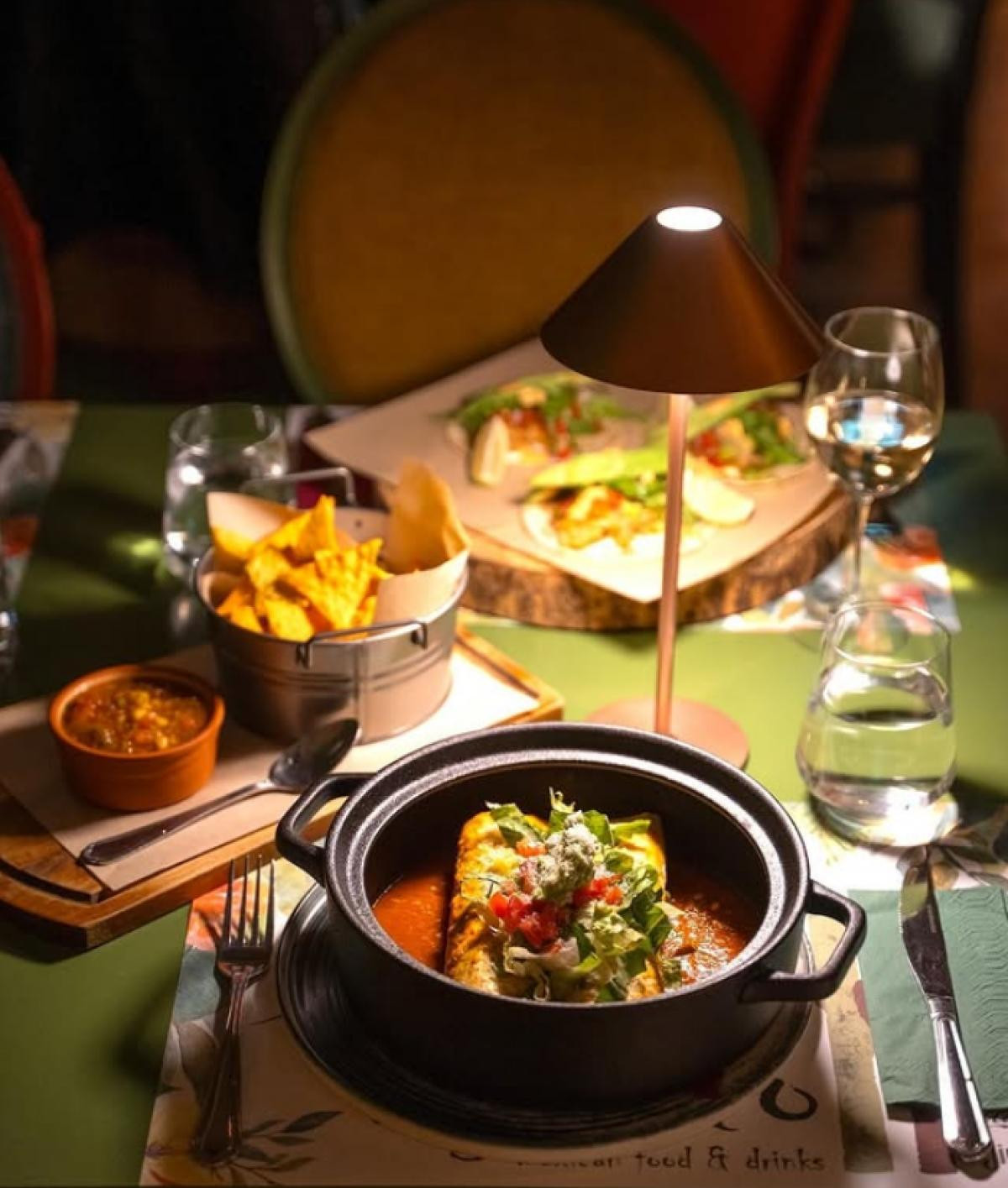 Στο μενού του θα βρείτε μια ποικιλία από tacos, burritos, quesadillas και fajitas, όλα φτιαγμένα με φρέσκα υλικά και γευστικές σάλτσες που απογειώνουν την εμπειρία. Οι δροσιστικές μαργαρίτες και τα cocktails με τεκίλα συμπληρώνουν ιδανικά το γεύμα, δημιουργώντας μια πραγματική fiesta για τους λάτρεις της μεξικάνικης γαστρονομίας.
