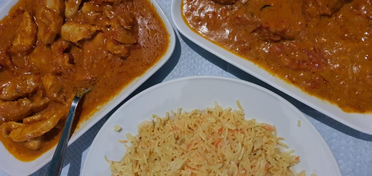 μαγειρεμένες με σπανάκι και κρεμμύδι, και στη συνέχεια το εξαιρετικό κοτόπουλο ταντούρι