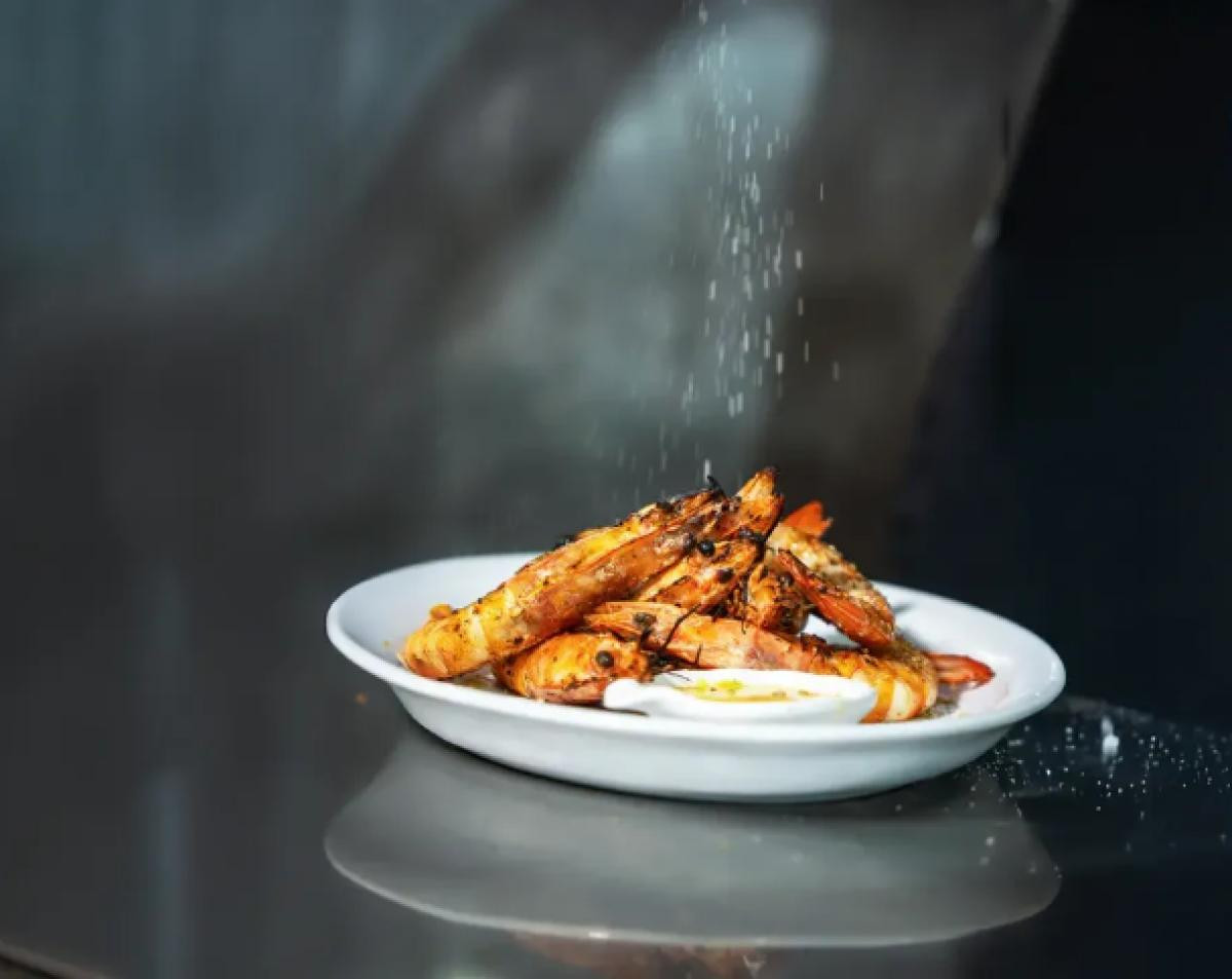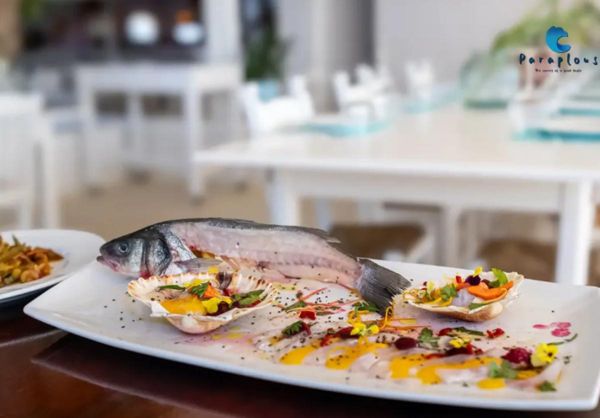 The restaurant location on the beach is astonishing, the fish and seafood selection presented just at the enterance to the place.