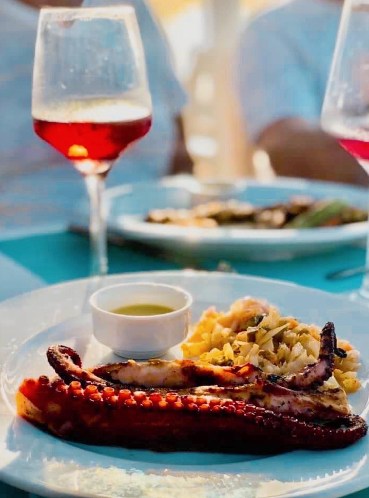 The setting along with the restaurant are both stunning, it is right on the sea front and the perfect place to watch the sun set over the sea. The services was 10/10 from the moment we arrive to the moment we left . All the staff are friendly and attentive without been overbearing . Been a lover of seafood this was the perfect place for me , the fresh mussels and red snapper were faultless , my partner enjoyed his food including the steak very much it was cooked perfectly and tasted delicious. Have to say dining her at sun set was one of the highlights of our holiday , can’t recommend enough . Definitely worth a visit .