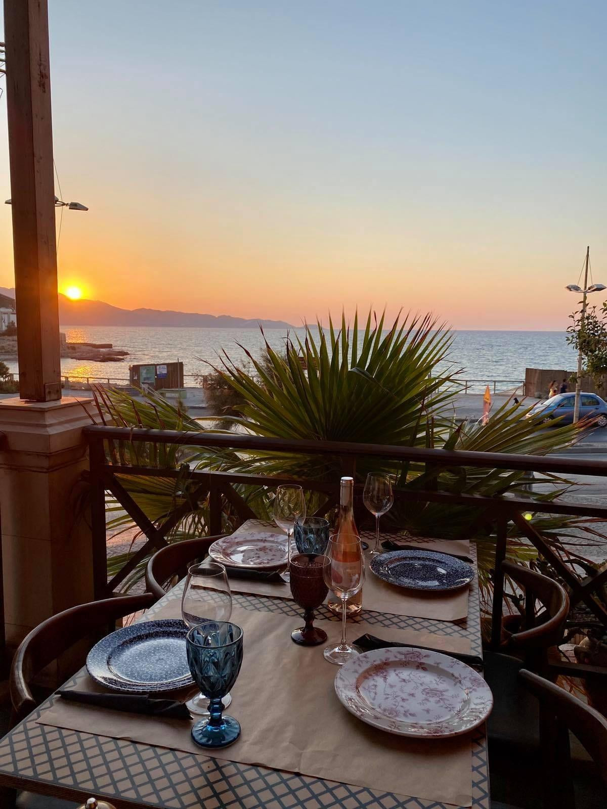 I went with my wife after 21.00 and our table was on the balcony. Great sea view and nice atmosphere. The food was nice and we choose to drink and taste bottle of wine from Crete.