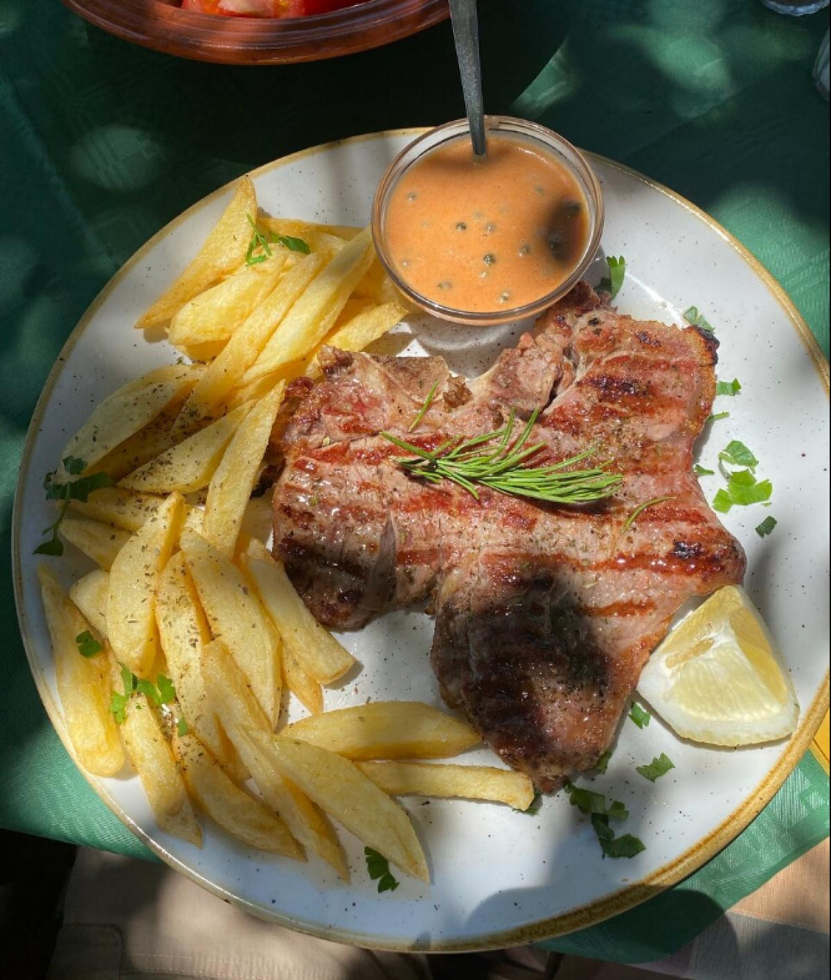 Centered around a big “Platano” it offers great greek food, effective and quick service and reasonable price