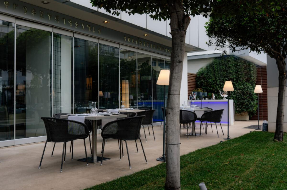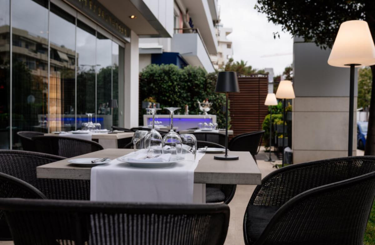Το εστιατόριο είναι διακοσμημένο με μοντέρνες και κομψές γραμμές, δημιουργώντας ένα φιλόξενο και ταυτόχρονα εκλεπτυσμένο περιβάλλον. Ο χώρος είναι φωτεινός και άνετος, με άριστη αισθητική που συνδυάζει την παραδοσιακή κρητική φιλοξενία με μοντέρνες πινελιές.