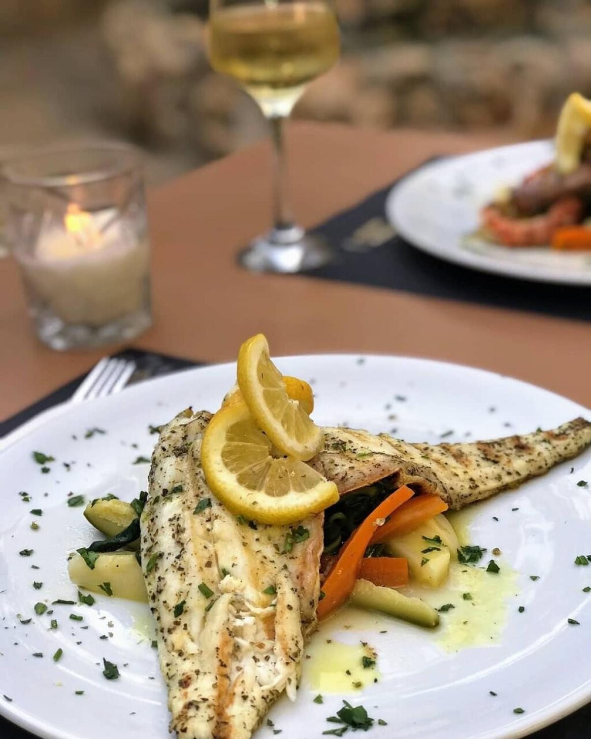 Lovey fish , nicely filleted served with vegetables. Good choice of wines from all over Greece. The steak with pepper and ginger sauce, again came with traditional vegetables was also very nice.