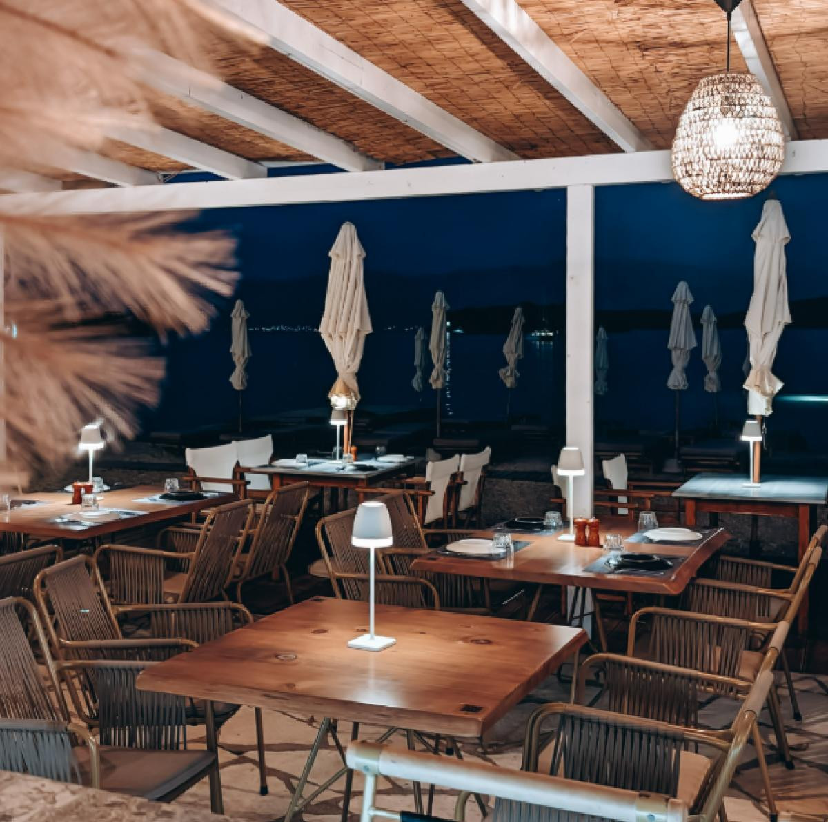 My husband and I loved the beautiful location of the restaurant looking out at the sea, and especially the gorgeous lamps lining the beach. The food was tasty although not exceptional. The service was fantastic, warm and friendly, and we were even given extra wine. The only downside was the fact that the restaurant lacked buzz as we were the only couple there, and were eventually joined by a second couple. It’s a shame that the lovely location and service are a little let down by the food and ambience.