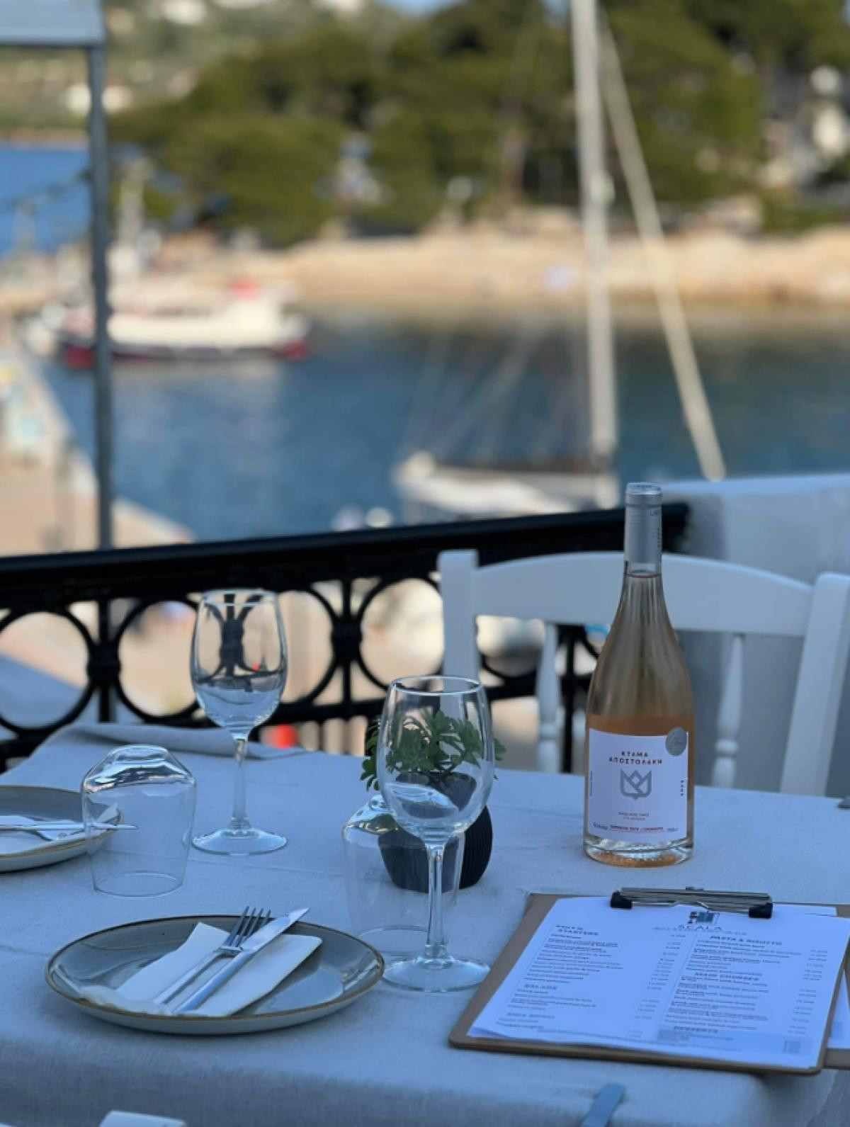 Beautiful restaurant in a great position in Skiathos old port. Service was of the highest standard & warm welcome! Table setting was immaculate & wine house selection was superb. Selection menu was extensive & varied leading us to our meal which was delicious & served beautifully! The chef’s can be seen cooking in the kitchen as you make your way to your table which we loved! Compliments to all the kitchen & chefs can’t wait to return superb!!