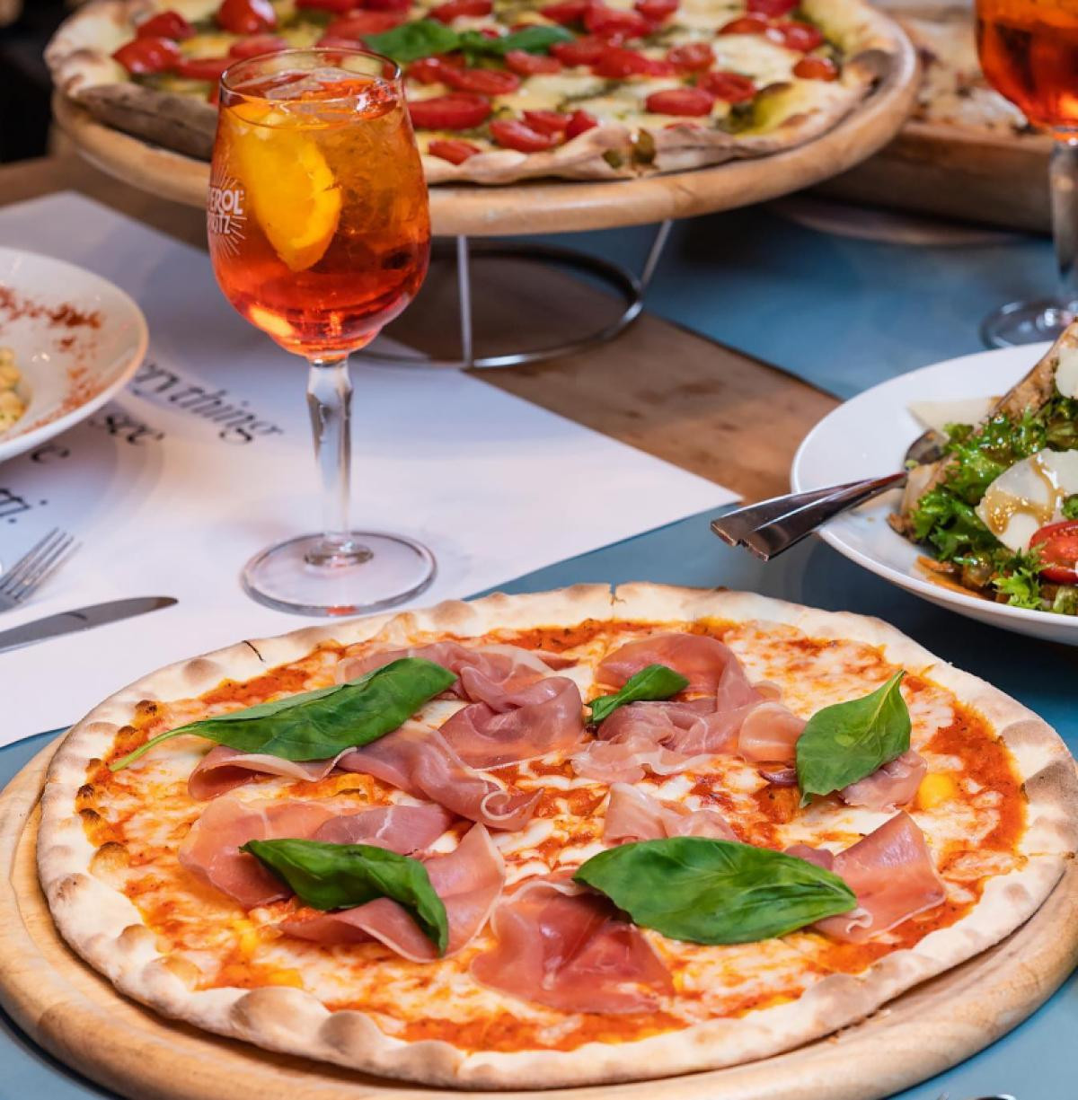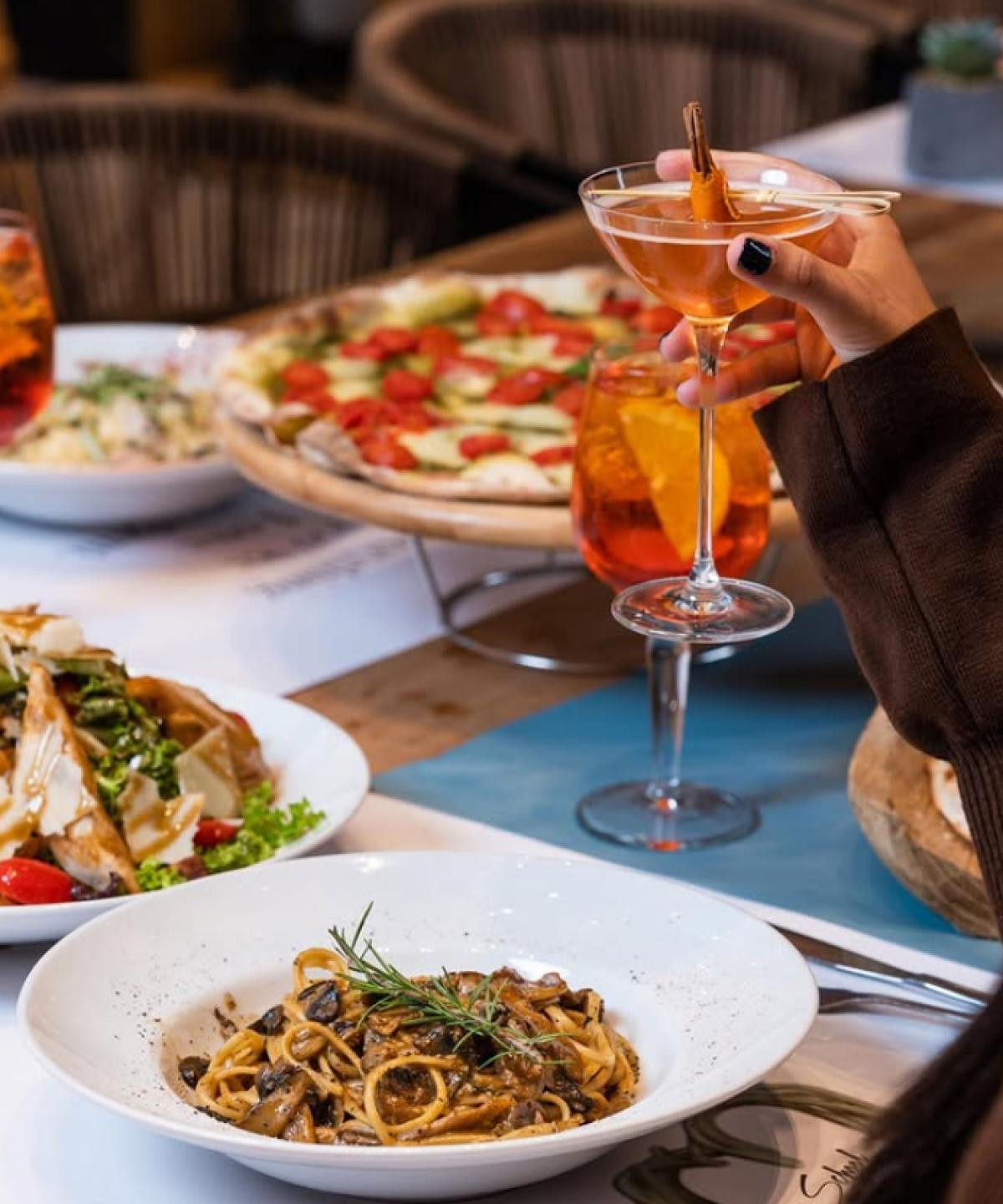We tried bruscetta,salad and pizza.All were delicious.Service was neat and Quick.We had 2 bottles of wine,worth the price !Surely recommended.