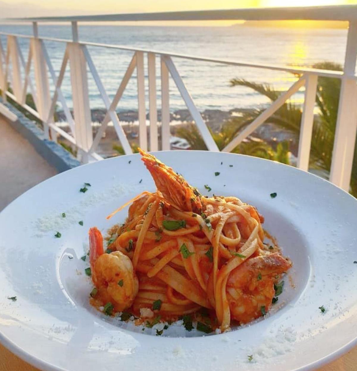 Only 7 min. from the main road. Go down by the apartments Aegean view villa. Right by the beach. Fantastic sunset. Great food and service.