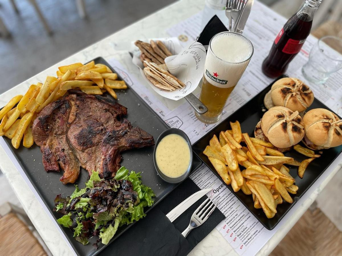 κρουτόν και χειροποίητη vinaigrette, και οπωσδήποτε μην παραλείψετε να δοκιμάσετε την μοσχαρίσια μπριζόλα milk fed veal steak μερίδα συνοδευόμενη από πατάτες τηγανητές και μουσταρδολέμονο. Όλα τα πιάτα σας συνδυάζονται κάλλιστα με ένα