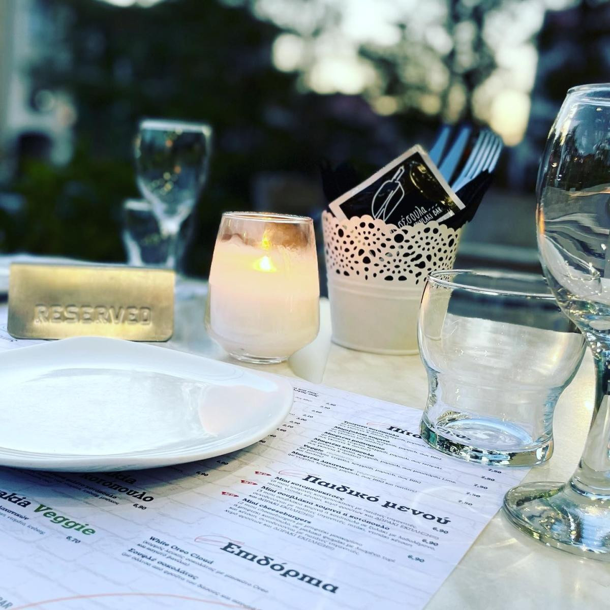 ποτήρι κρασί από την ενημερωμένη λίστα του σουβλάκι bar Στη Σέσουλα, στην Κέρκυρα.