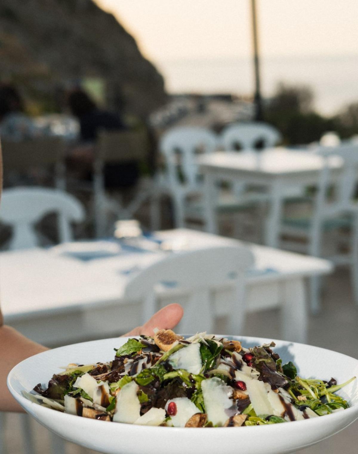 We were first greeted by the stunning views from the cliff top seating area. We booked for dinner so we were accompanied by an softly coloured changing sunset during our meal. The service was attentive and prompt (from booking online to our time in the restaurant) and not fussy. The food was authentic and simple.