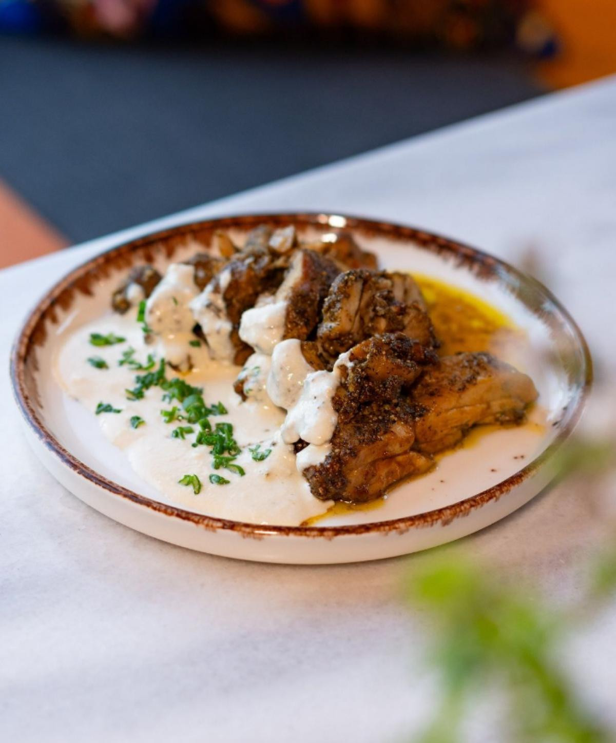 Προσφέρει μια μεγάλη ποικιλία από ελληνικά μεζεδάκια, σαλάτες, κύρια πιάτα και γλυκά, όλα φτιαγμένα με φρέσκα και ποιοτικά υλικά. Οι γεύσεις είναι παραδοσιακές με μια σύγχρονη πινελιά, που καλύπτουν όλες τις προτιμήσεις.Μπορείτε να απολαύσετε ελληνικά κρασιά, τσίπουρο, ούζο και άλλα ποτά που συνοδεύουν ιδανικά το φαγητό σας.