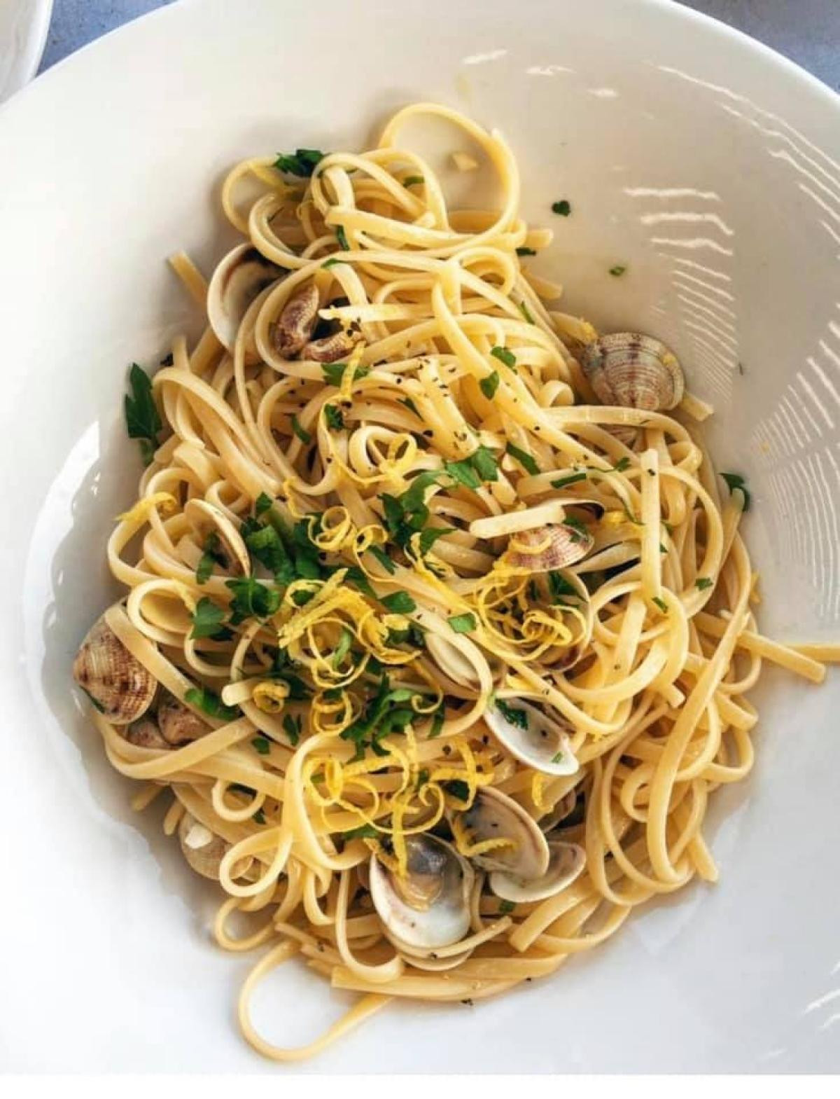 σαγανάκι, τα ζυμαρικά πασπαλισμένα με ξύσμα λεμονιού, το λιγκουίνι θαλασσινών,