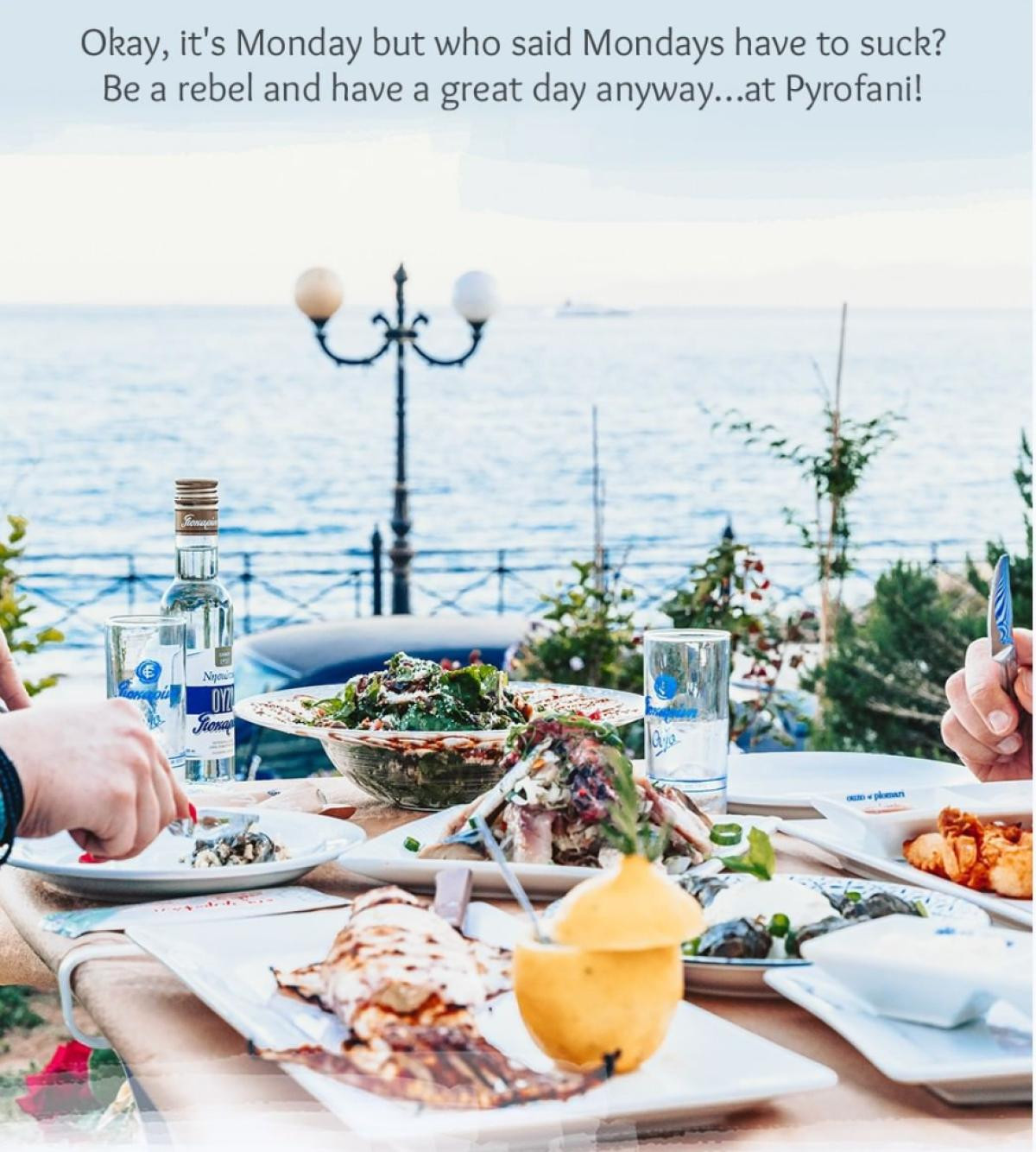 Απολαύστε το γεύμα με την παρέα σας ,σε συνδυασμό με την μαγευτική θέα της θάλασσας, στο Πυροφάνι του Πειραιά στην Πειραϊκή.